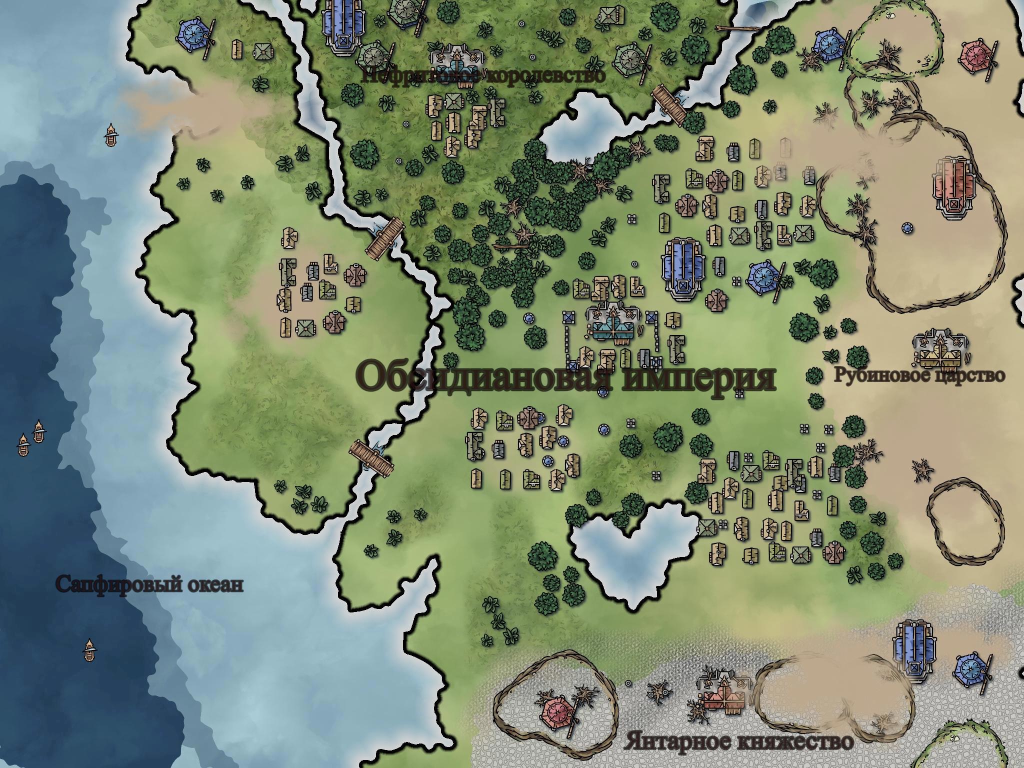 — На севере за Проклятым лесом с уродливыми троллями и их прожорливыми деревьями, — тоном опытной учительницы по географии охотно начала рассказ Гленна, — Расположены плодородные поля и луга живописного Нефритового королевства, родины малахитовых драконов. На западе живут прекрасные русалки и гигантские морские змеи в Сапфировом океане. Рубиновое царство соседствует с юга, его обширные бесплодные земли покрыты огненными реками и бордовыми горами, а в чёрных небесах свободно парят кровавые драконы. И, наконец, солнечные змеи обитают на дальнем востоке среди бескрайних пустынь и песчаных барханов в засушливом Янтарном княжестве.