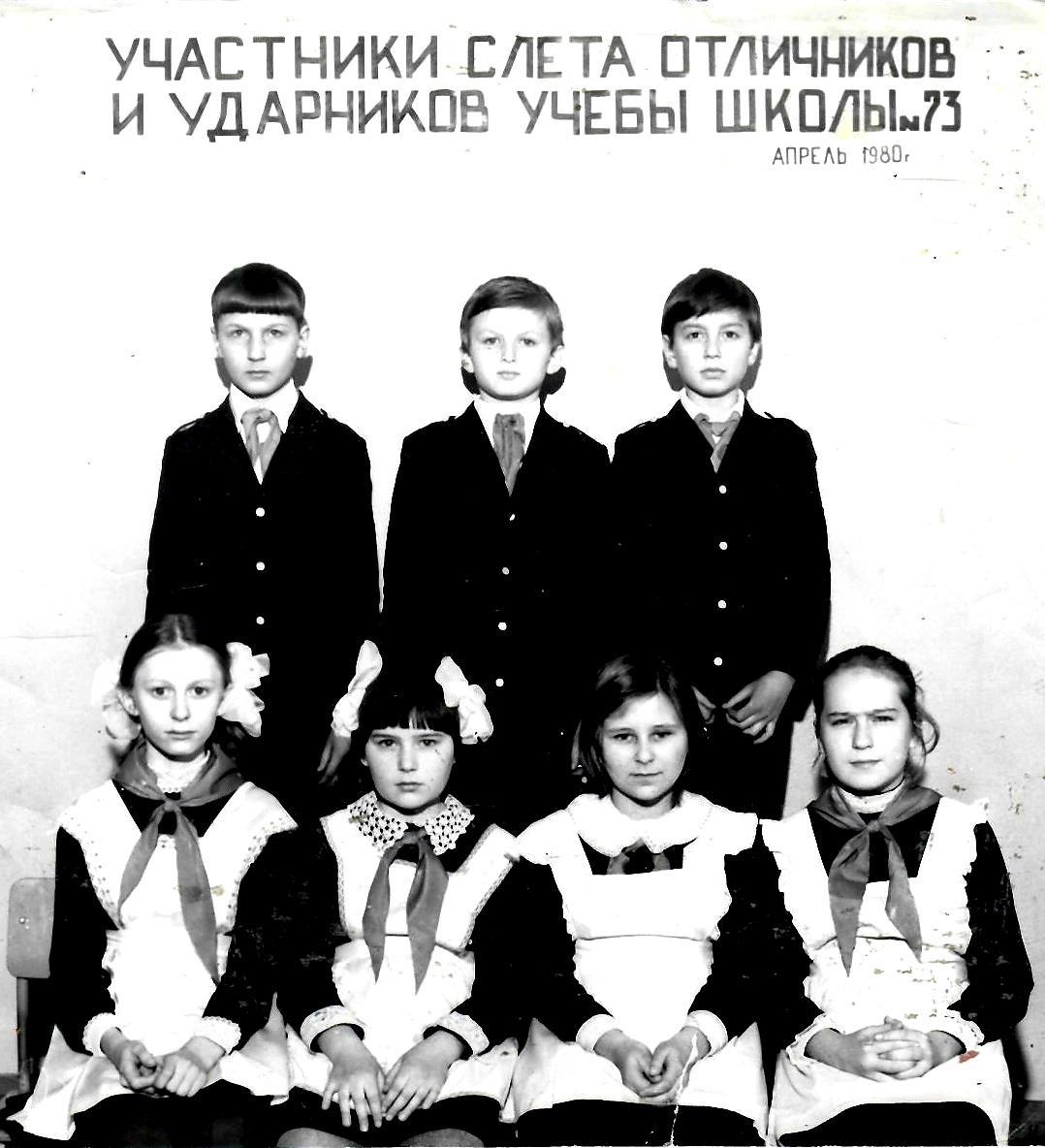 Нашла тут старинную фотографию "Участники слёта отличников и ударников учёбы школы № 73", датированную аж апрелем 1980 года, в прошлом месяце этому фото стукнула, аж, 43 года!