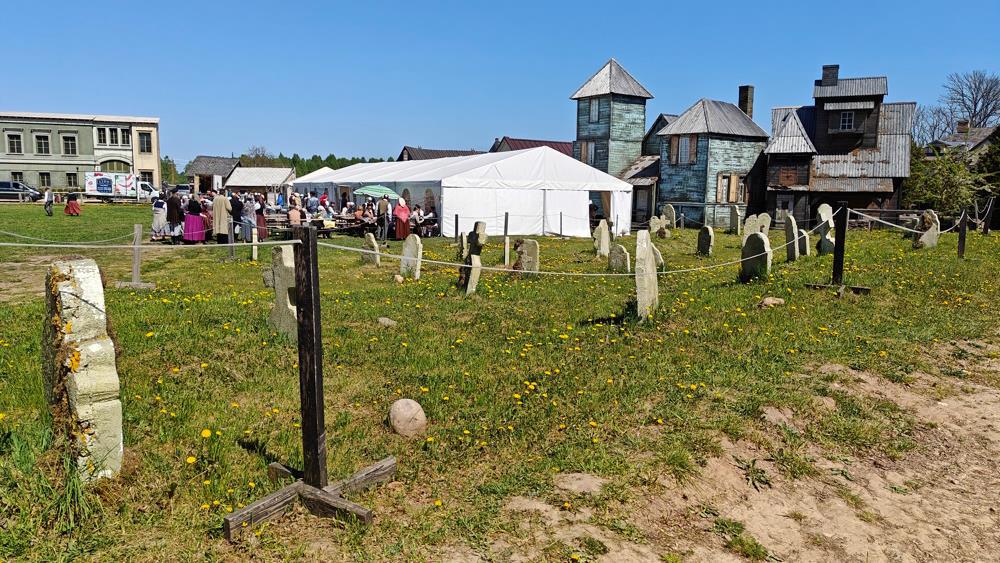 Ну а это, собственно, артисты на обеденном перерыве. Вдали стоит машина Лидо - привезла обед. А на переднем плане погост. Не волнуйтесь, надгробия из пенопласта, мы проверили