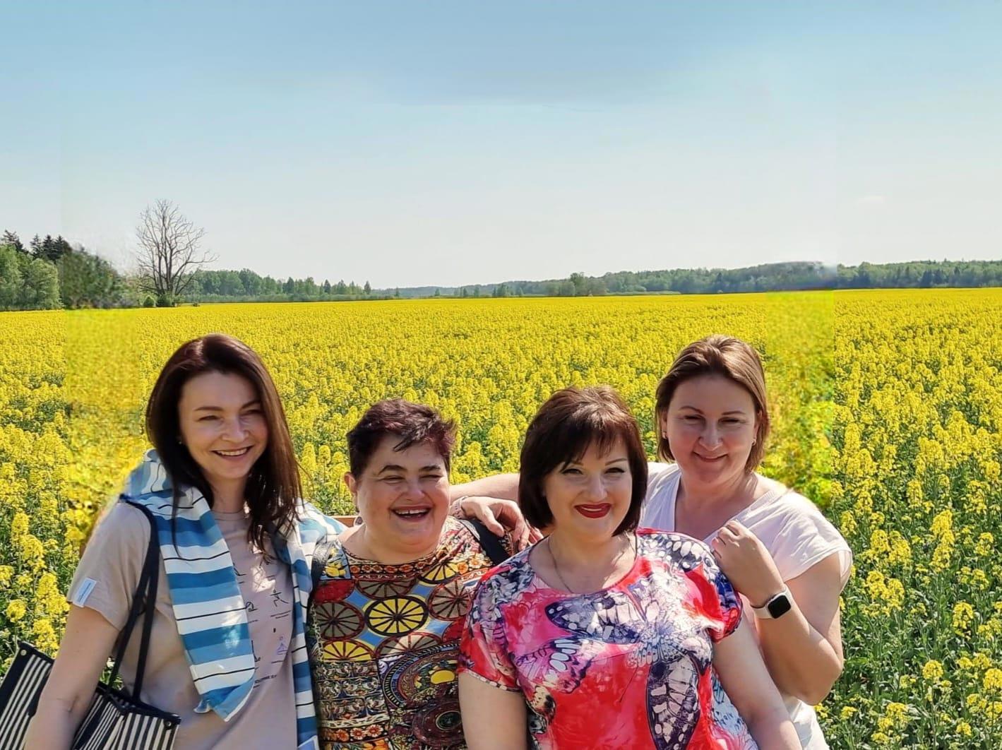 Ну и в заключение, мой маленький коллектив без мужей и детей, чисто "производство" на фоне цветущего рапса.