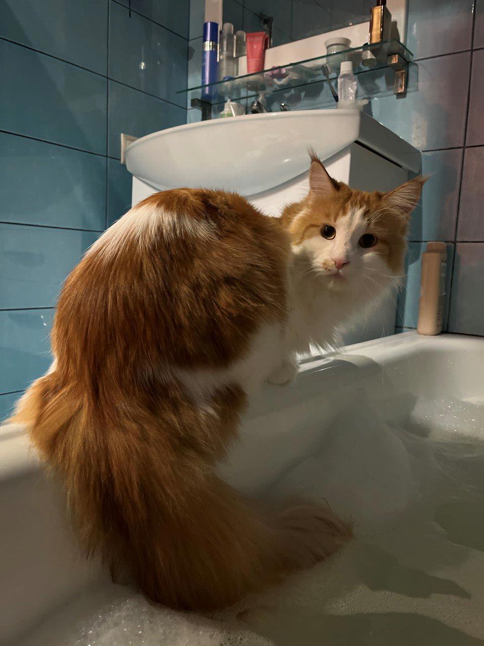 С апреля мы живём вдвоём, а для слишком компанейской кошки это значит, что теперь я её компания. Поэтому она ходит за мной по квартире по пятам: я в спальню - она в спальню, я на кухню - она на кухню, я в ванную - она в ванную.