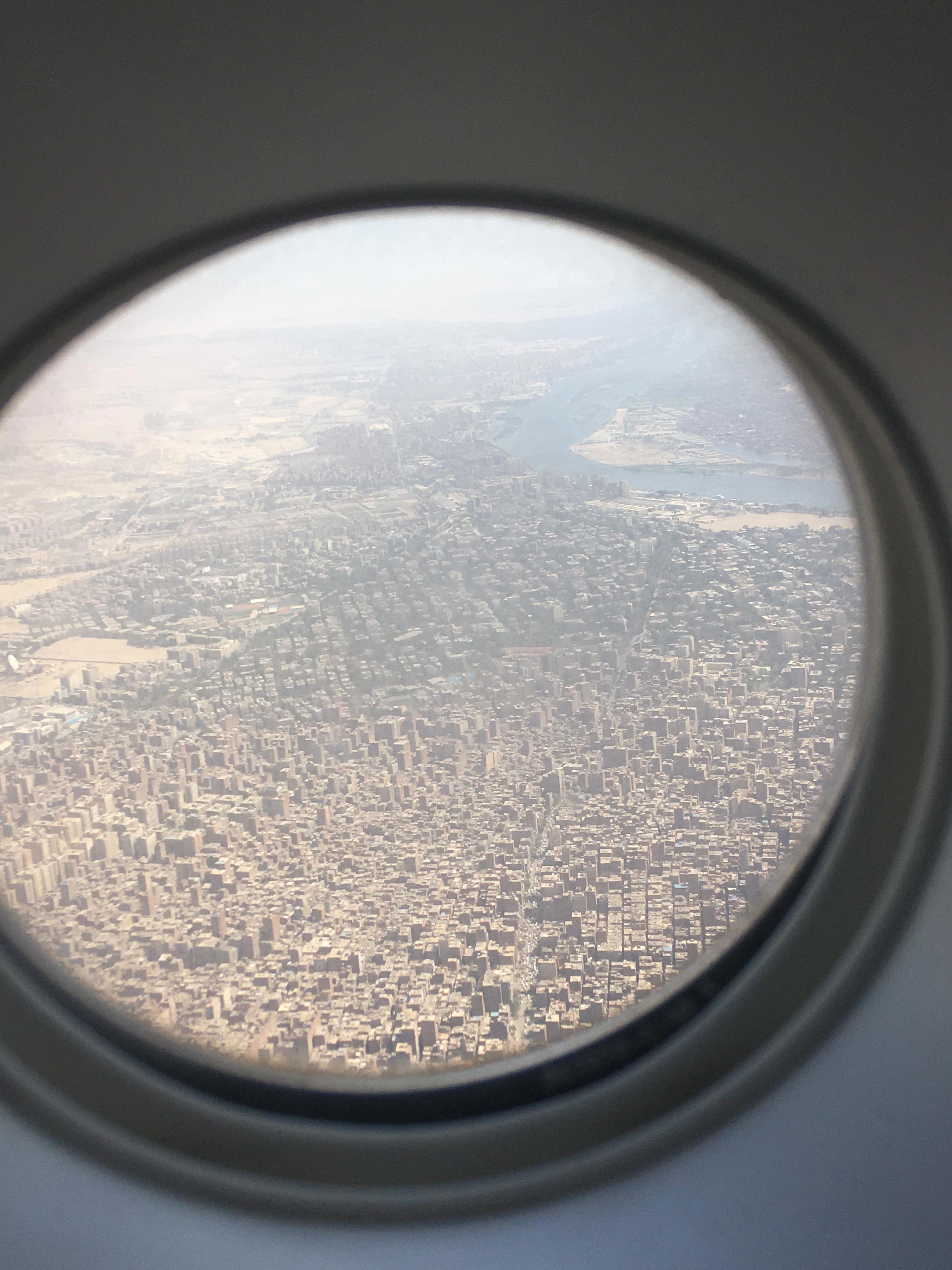Пирамиды на посадке тоже видно, но я почему-то сочла, что не так уж это интересно и ракурс не очень. Зато можно заценить, если кликнуть на фото, какой город огромный и вытянутый вдоль реки. Целиком он тут, естественно, не влез.