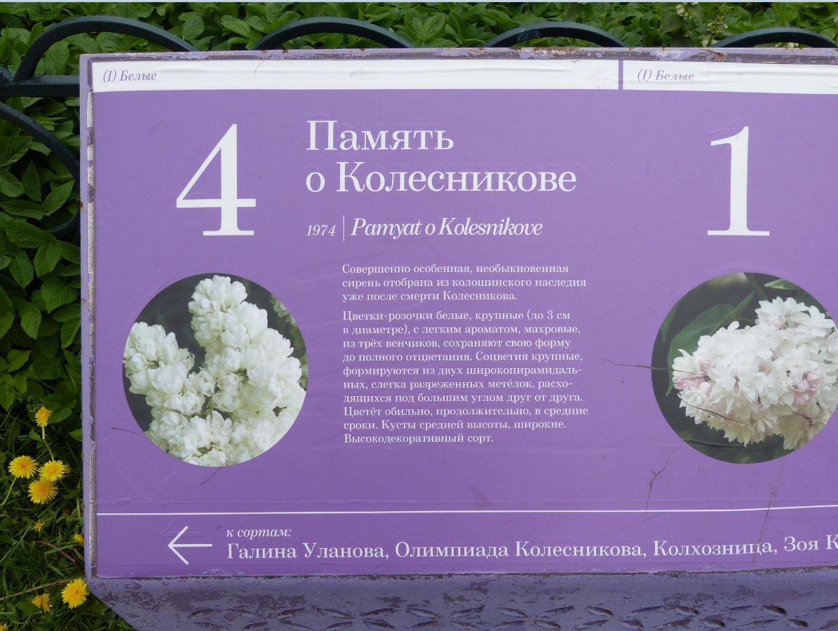 Некоторые сорта сирени описаны на информационных щитах или же их названия указаны на столбиках.