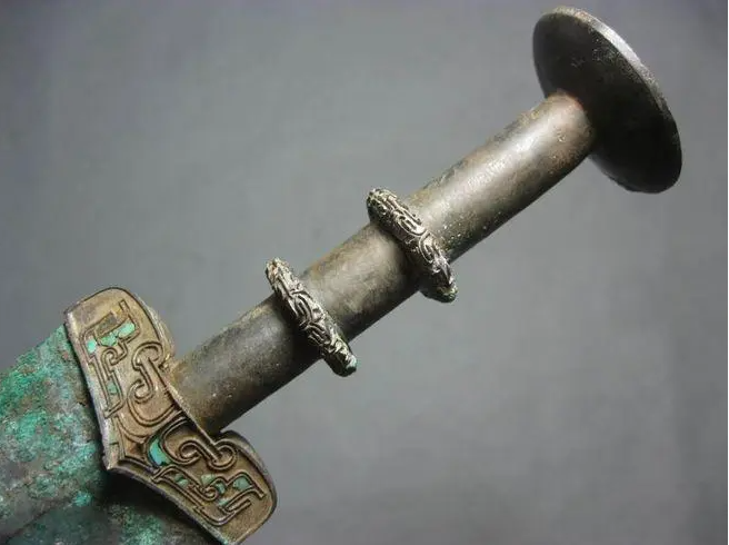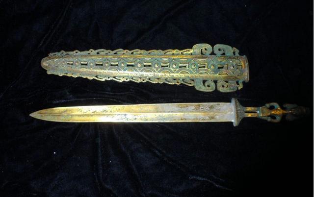 Это был бронзовый циньский цзянь, тяжелых и, в то же самое время, плавных очертаний, как два потока падающие с утеса сходятся на острие! Его середина была тусклой, как будто там клубился туман, а по краю он светился бледным золотом, прорвавшимся сквозь тучи.
