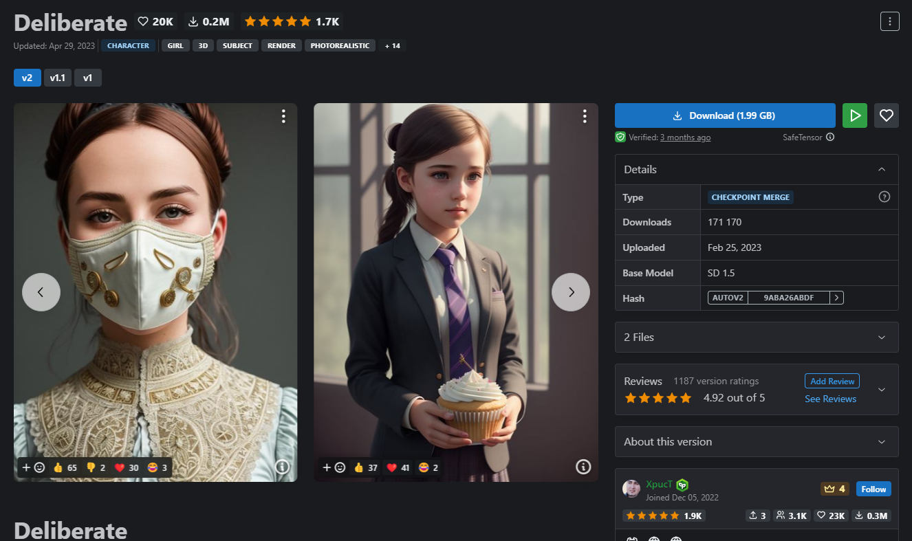 4. Теперь идем на сайт https://civitai.com/. Тут хранятся различные модели. На каждый вкус и цвет. Качаем любую. Но я бы советовал Deliberate(скрин1) т.к она стабильна в выдаче результатов. Просто находим ее в поиске и качаем. Для не зарегистрированных пользователей не будут видны некоторые арты. Т.к они относятся к категории 18+. Даже если они не будут видны после регистрации. То. Переходим в настройки аккаунта(правый верхний угол, скрин 2). Мотаем вниз и ставим галку(скрин3)