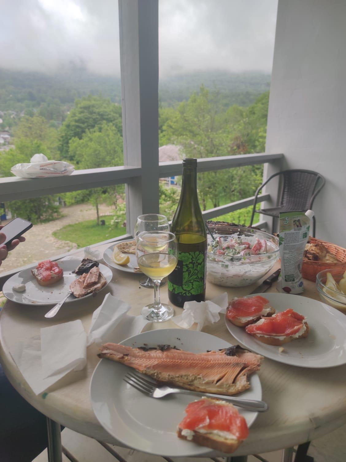Автор: СтаргородскийНу вот примерно так. Позабавила кошачья бригала, кошки - как на подбор - рыжая, черепаховая маленькая, но очень красивая, вислоухая - абсолютно флегматичная, черная - лазила к нам на балкон по стенке, очень вежливо садилась в уголке и ждала, пока ей положат чего-нибудь вкусного. Форель сьела прямо с головой и хребтом ))))