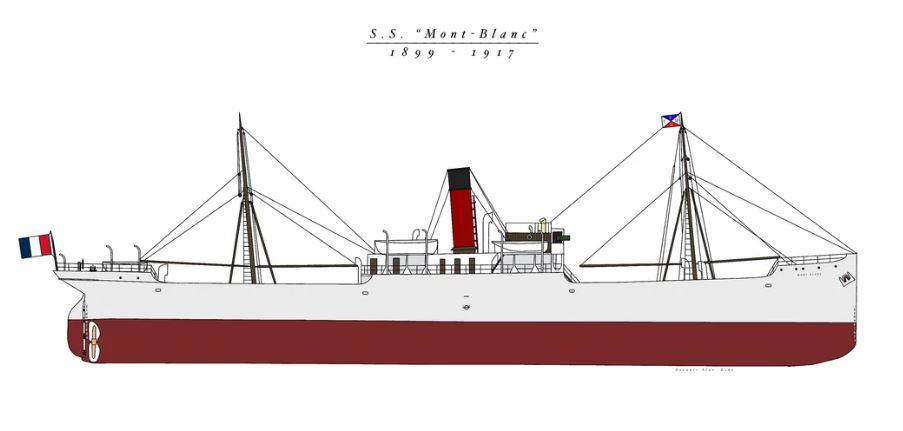 Грузовой пароход Mont-Blanc был зафрахтован в ноябре 1917 года для перевозки взрывчатки из США во Францию. 25 ноября 1917 года это судно начало загружать в свои трюмы в порту Нью-Йорка 2300 тонн мокрой и сухой пикриновой кислоты, 500 тонн (по другим данным 200 тонн) тротила, 10 тонн пироксилина и 35 тонн бензола в бочках.
