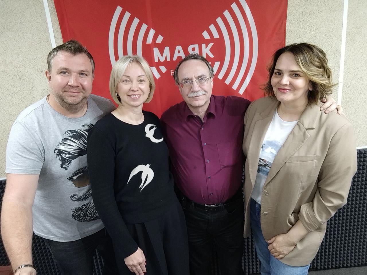 На фото: Даниил Крамер, Елена Красулина, вице-президент Ротари-клуба «Барнаул», и ведущие «Первых на Маяке» — Вячеслав Шаров и Вера Климанова.