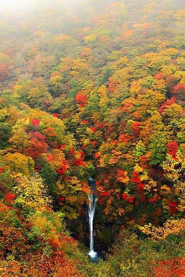 Осенний листопад и водопад в Хатимантай, Тохоку
