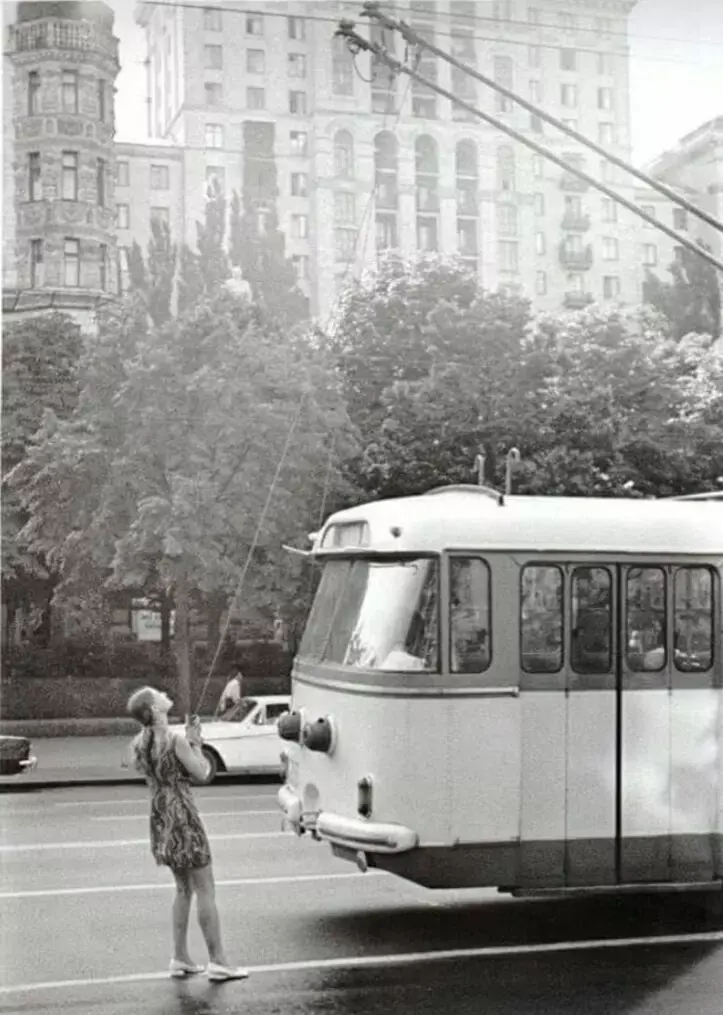 Автор: РыжийМилый водитель троллейбуса в СССР. Киев, УССР, возле ЦУМа, 1975 г