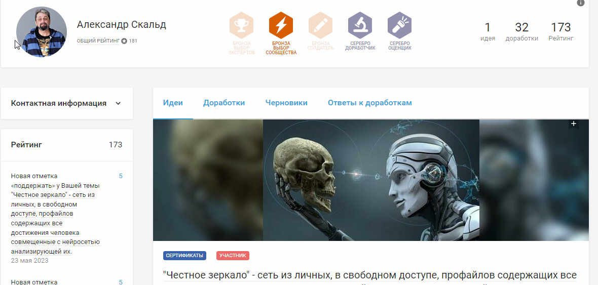 Проект 21 мая 2023 года заявлен на государственной платформе Форума «Сильные идеи для нового времени» в разделе "Цифровые технологии". Уже есть поддержка от заинтересовавшихся.