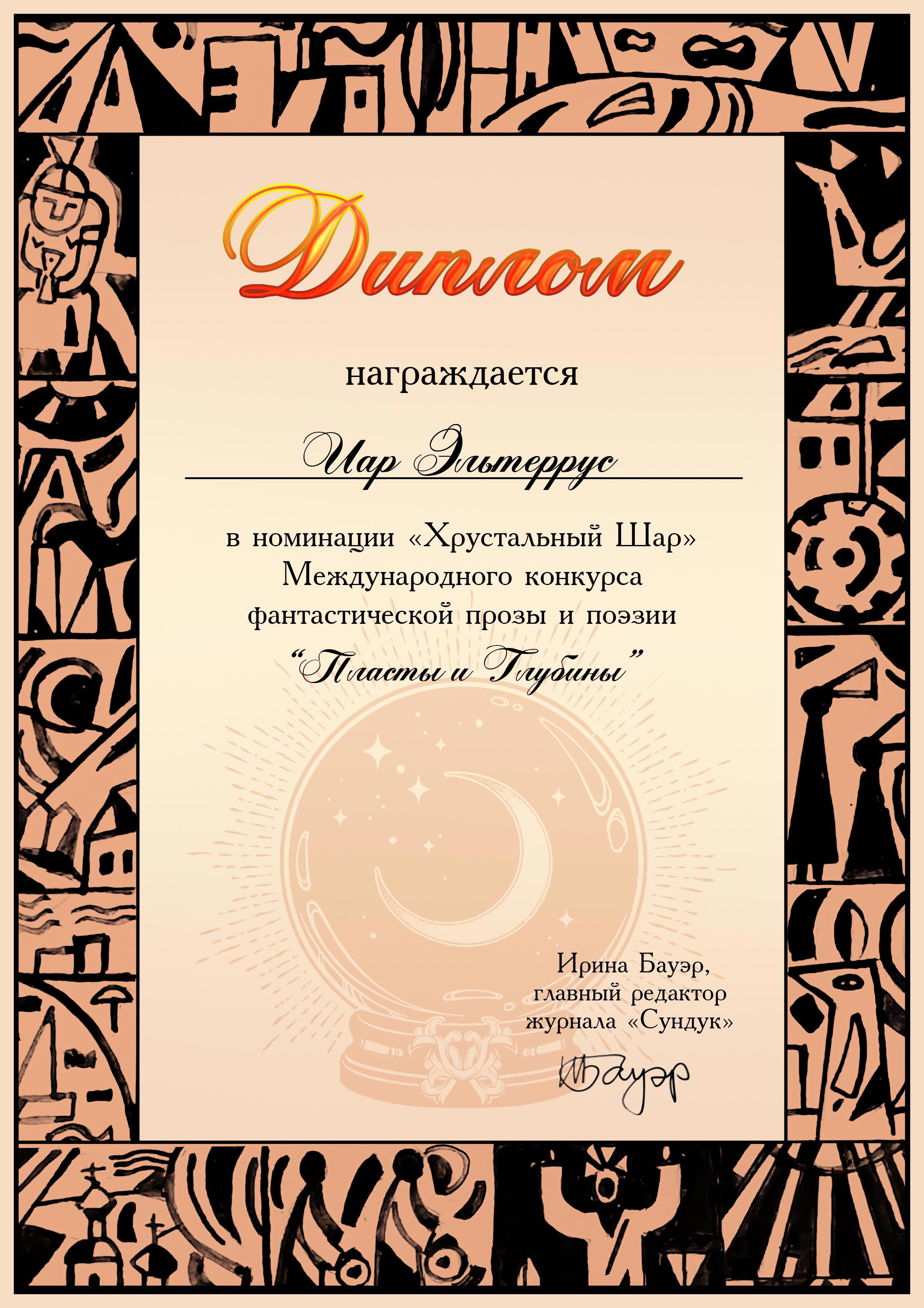 Получил в числе других диплом в номинации "Хрустальный шар"