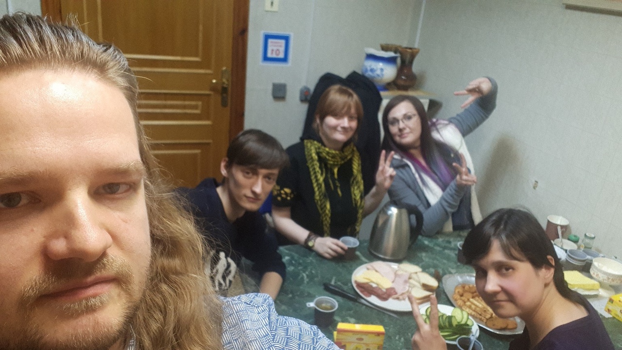 Итак, мы собрались вместе с другими молодыми писателями-фантастами (Алекс Передерий, Иван Абрамов, Даша Демченкова и Вячеслав Базов в качестве группы поддержки) в библиотеке №106, чтобы прочитать свои рассказы. Я читал Крылатого ежа и Искусство спасёт мир. Хотел ещё Добрыню Никитича и грязную тарелку, но график сдвинулся и времени не хватило.