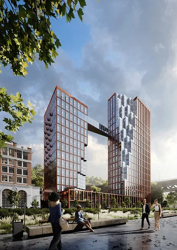 А вот эскиз основного их проекта, 100-метровые башни с вертолетной блять площадкой