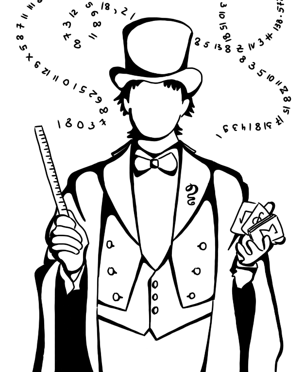 "Казалось бы, что такому фокуснику доставать из шляпы? Логарифмическую линейку? Циркуль? Транспортир? А быть может, он воспользуется линейкой в качестве волшебной палочки? Наверное, всё-таки лучше один раз увидеть, чем сто раз строить догадки. Математические фокусники не тасуют карты и не заставляют предметы исчезать в черном ящике. Вместо карт у этих людей - числа, а вместо черного ящика - голова."