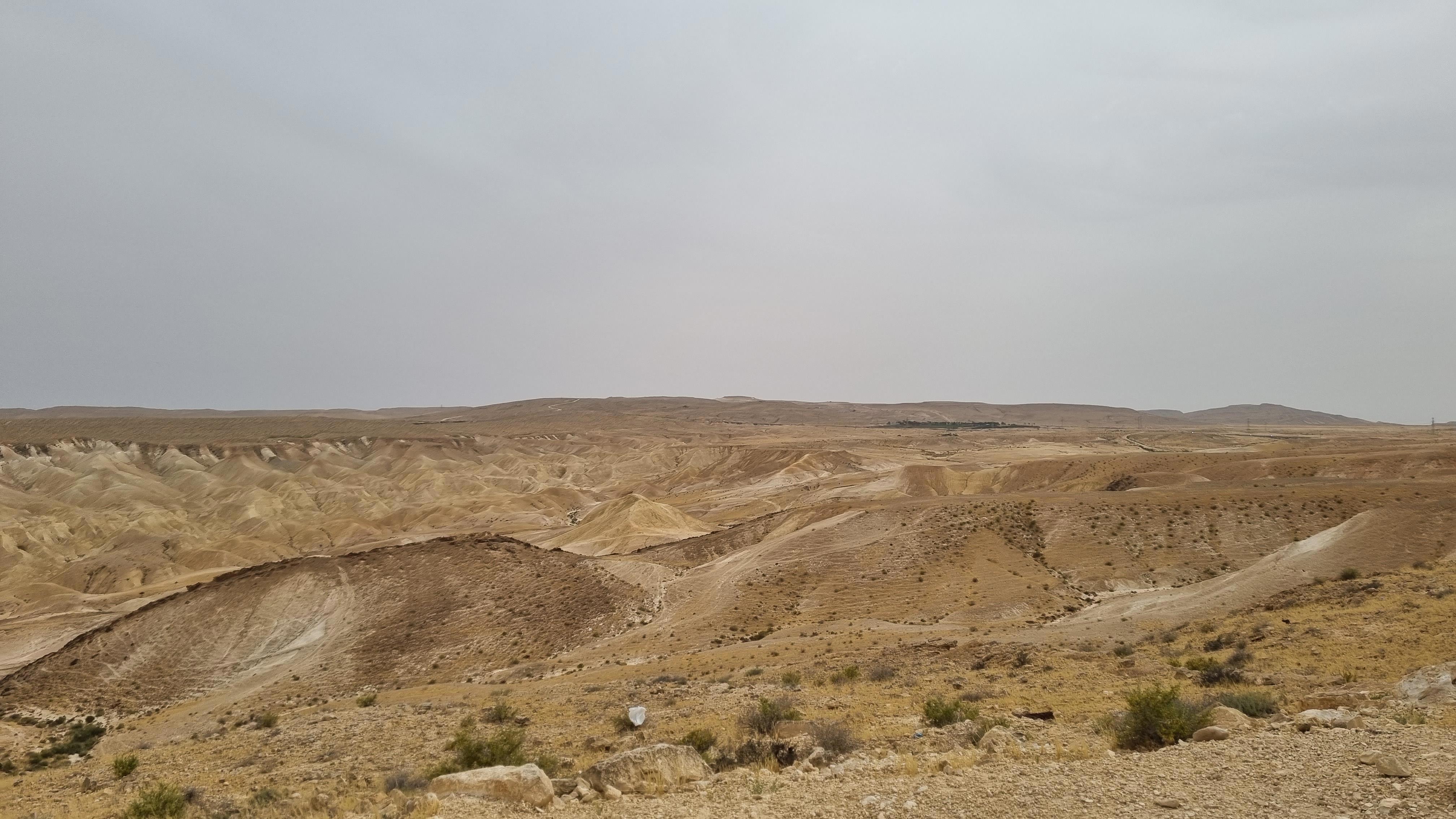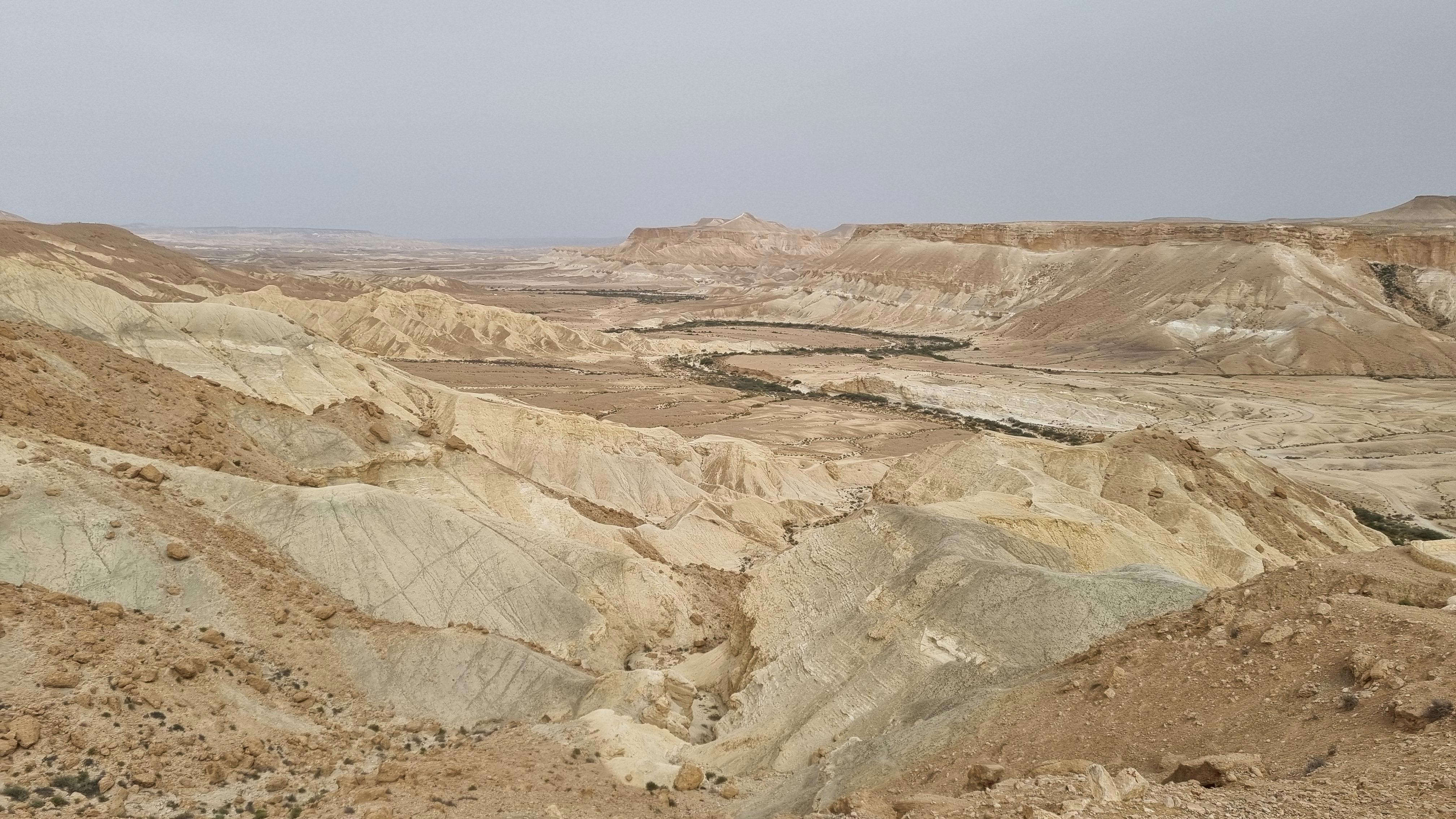 Известковые горы похожи на песчаные дюны. Их пересекает река верблюжьих колючек - по ней можно проследить, где скапливается вода во время дождей.