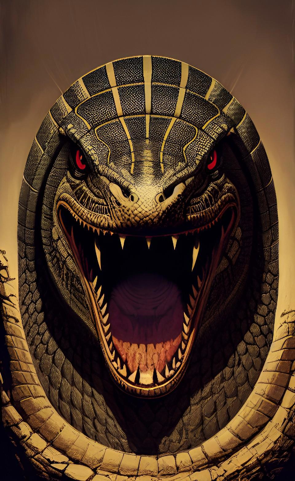 Вообще поначалу на обложку я хотел поставить другой арт, сгенерированный нейросетью. Вот он (красавец, не правда ли?) — но в последний момент передумал и снова полез создавать уже новое изображение. Дело в том, что взглянув на этого красавчика я понял — не, этот персонаж еще пригодится для другой истории. Уже сделал себе необходимую пометку в блокноте. Когда-нибудь доберусь до ее воплощения (а арт станет напоминать и вдохновлять). В какой-то момент даже немного пожалел о том, что образ Дахаки для цикла «Великих змеев» уже выбран. Но ничего не мешает придумать для серии новую монстрятину. Мифическую Саламандру например. Отдаленно чем-то напоминает Ну или это будет и вовсе самостоятельный проект, что отнюдь не исключено. В общем, все подшито в папочку, отложено и ждет своего часа. Надеюсь, он когда-нибудь наступит.
