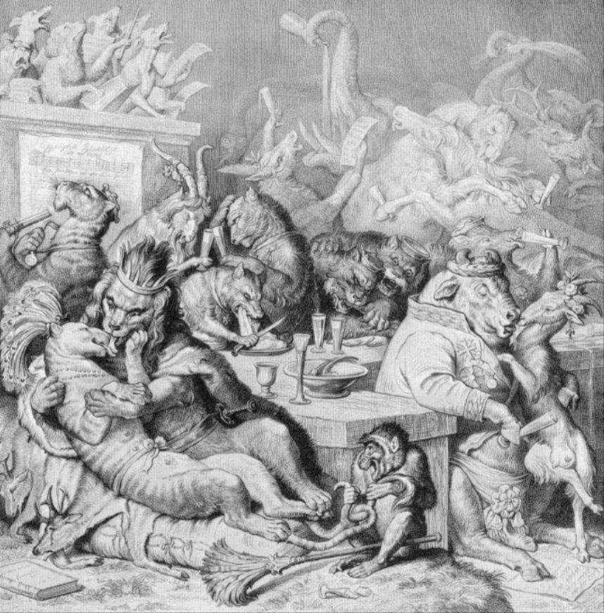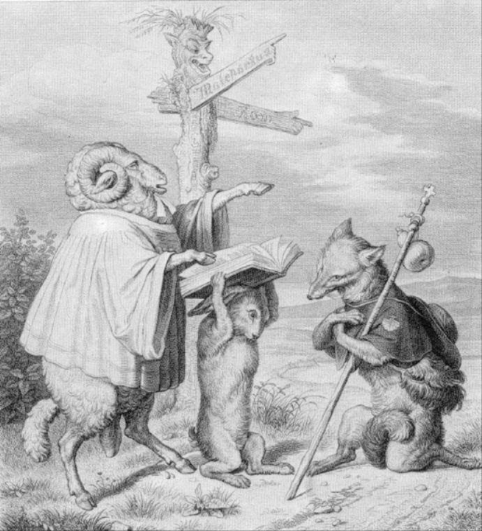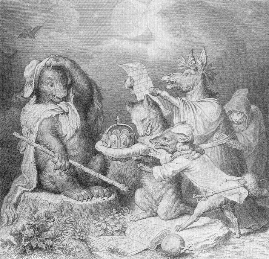 В 1839 году штутгартский издатель Георг фон Котта поручил художнику проиллюстрировать роман «Рейнеке-лис» Иоганна Вольфганга фон Гёте. Каульбах к 1847 году с большим юмором создал 36 основных рисунков и множество виньеток, которые были награвированы Юлиусом Шнорром, Гансом Рудольфом Раном и Адрианом Шлейхом.