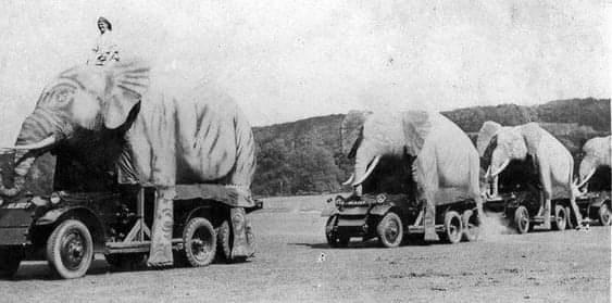 1941 год. Грузовые военные автомобили "Ланчестер", колесная формула 6х4, загруженные военными припасами, неспешно движутся по просёлочной дороге. Все здесь вроде как нормально, правда сверху вся эта войсковая колонна очень смахивает на караван индийских слонов, управляемый меланхоличными индусами, степенно восседающими на их шеях, но на что не пойдешь, чтобы ввести в обман вражеских лётчиков...