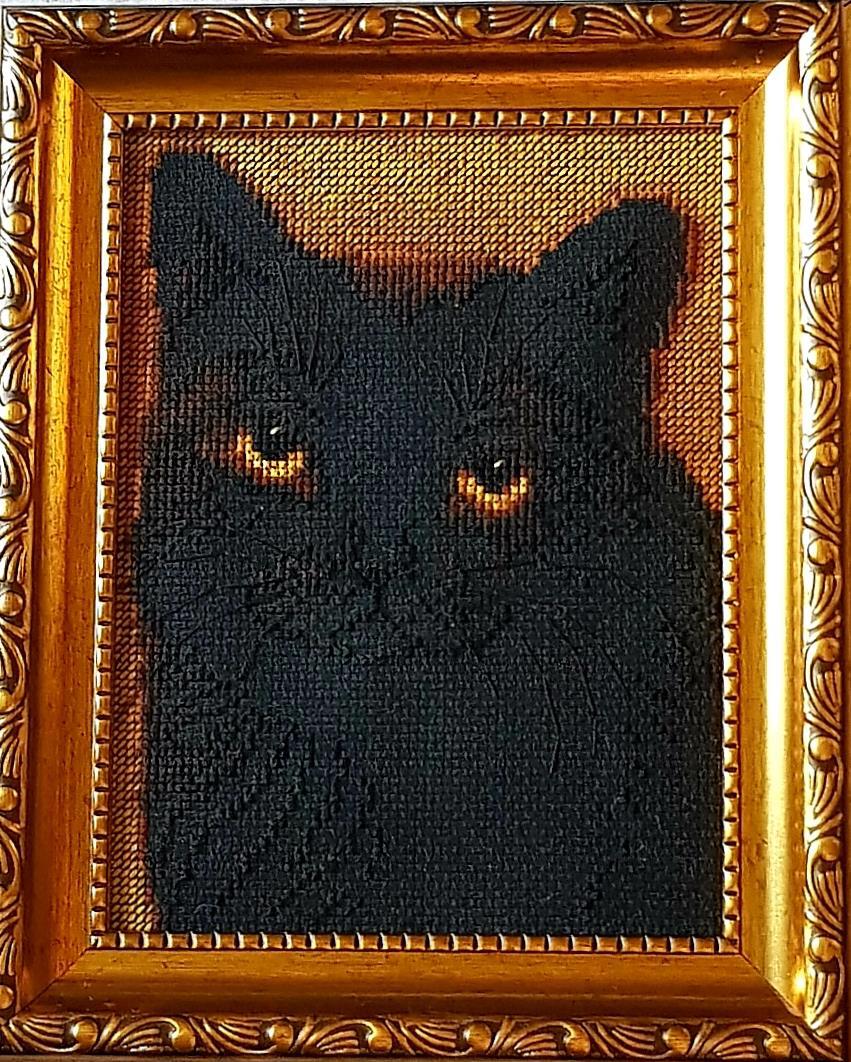 Автор: PseudokittiПолторы недели назад я писала, что сделала схему для вышивки из любимой фотки своего котика Барона. Так вот, в субботу я закончила вышивать его портрет! Теперь он стоит на полочке напротив кровати, и моё чёрное солнышко улыбается мне, стоит открыть глаза... смотрит на меня своими сияющими глазами и говорит: «Не печалься понапрасну, я навсегда останусь в твоём сердце!»