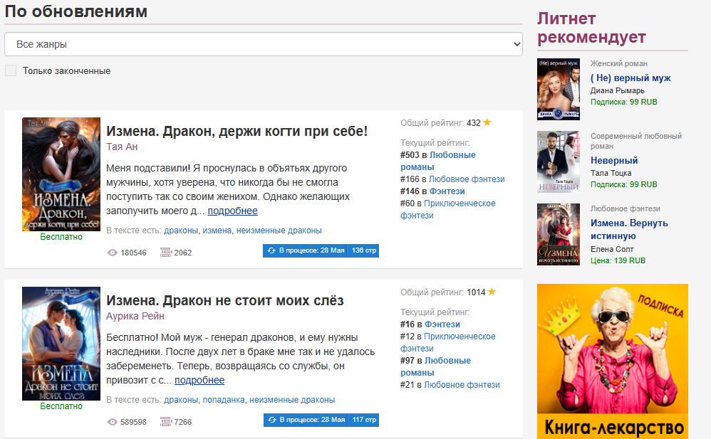 ...Вот сидит, значит, один человек на одном литературном сайте, знаменитом обилием дамского чтива, ждёт, когда у его книги жалкие 5 просмотров сменятся на жалкие 6, и офигевает от главных страниц:
