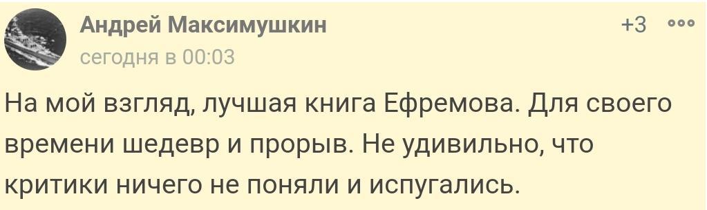 А вот мой персональный кумир Сергей Павлович Королёв очень любил и ценил Ивана Антоновича, и особенно именно этот роман.