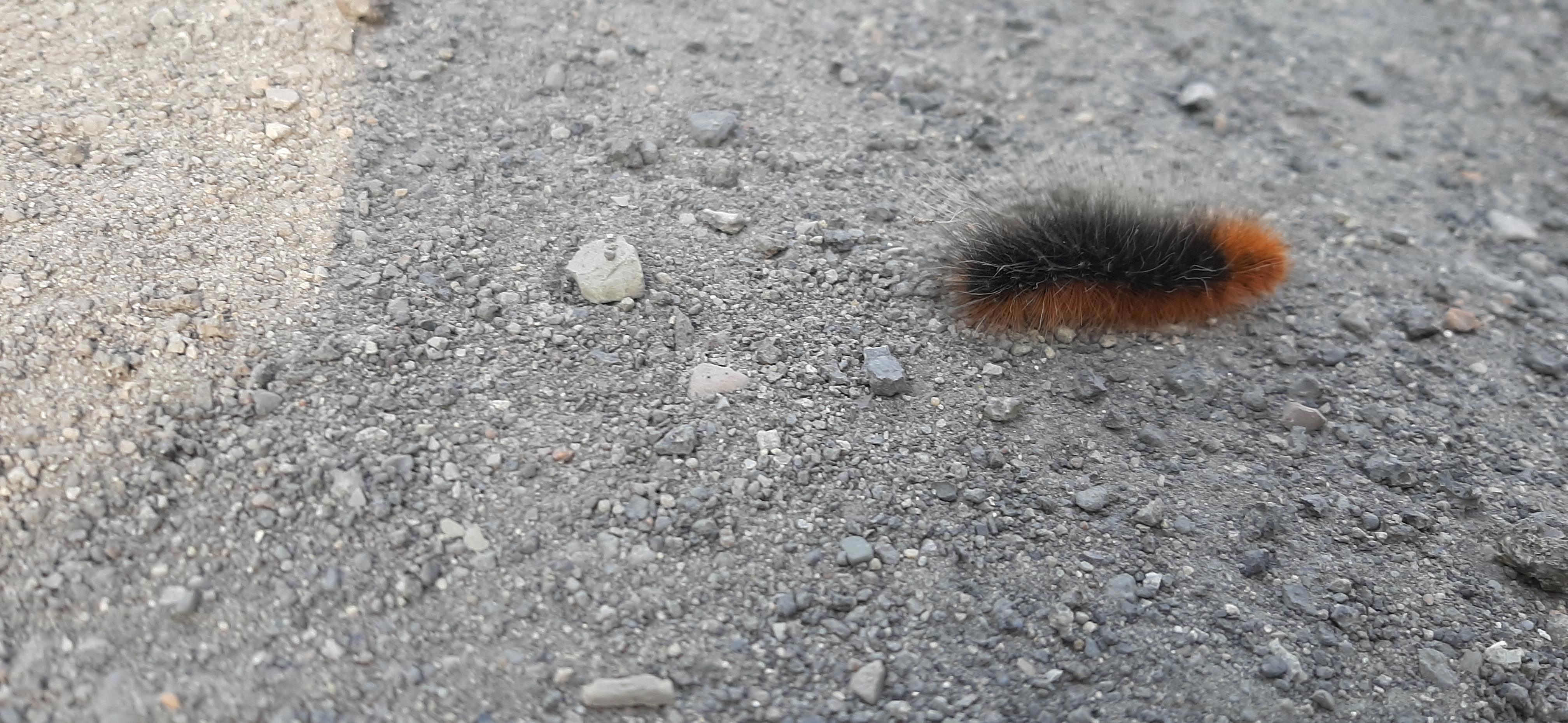 Понятия не имею, куда спешила эта гусеница. Наверно, она с дерева упала и торопилась как можно скорее убраться с дороги. Так и попала в кадр.