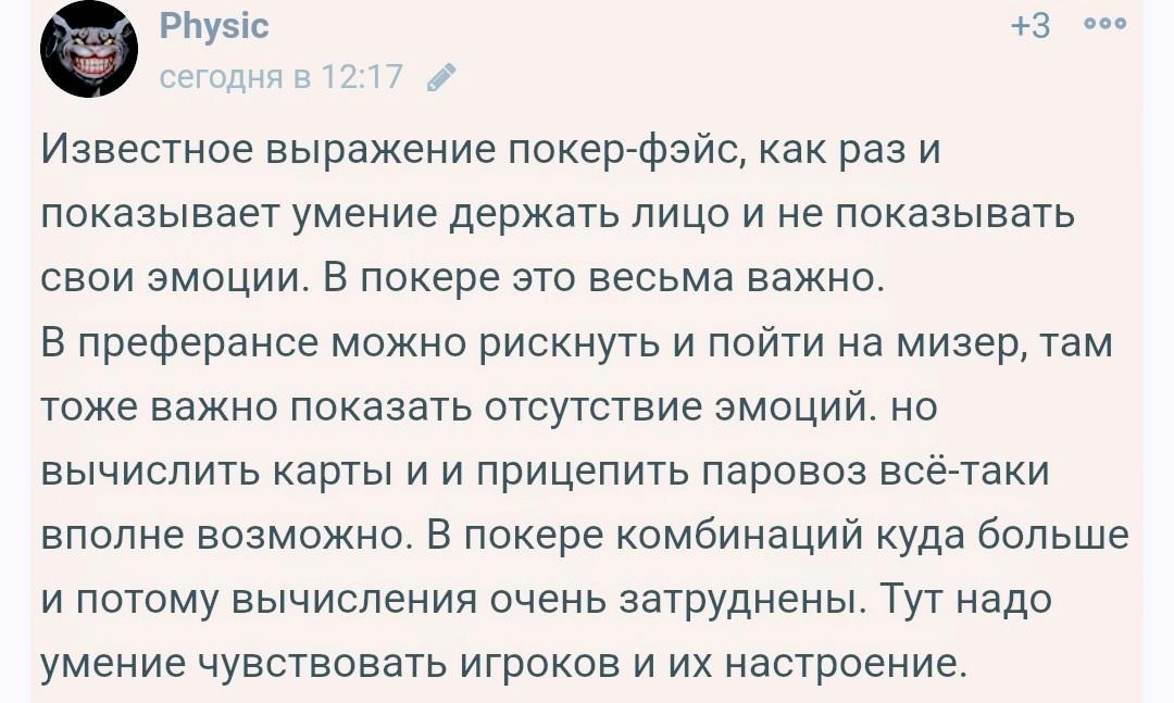 Преферанс и Бридж - это математика и логика, а покер это почти-что лицедейство :)