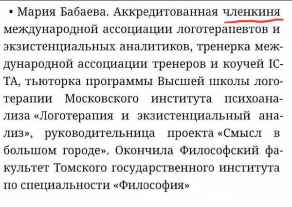 Автор: Минна БарнхольмТренерка, тьюторка, членкиня — тут даже биография не нужна, написанного достаточно: неумная баба. Изъясняться на русском не способна, только волапюк, только убогая фемская балачка.