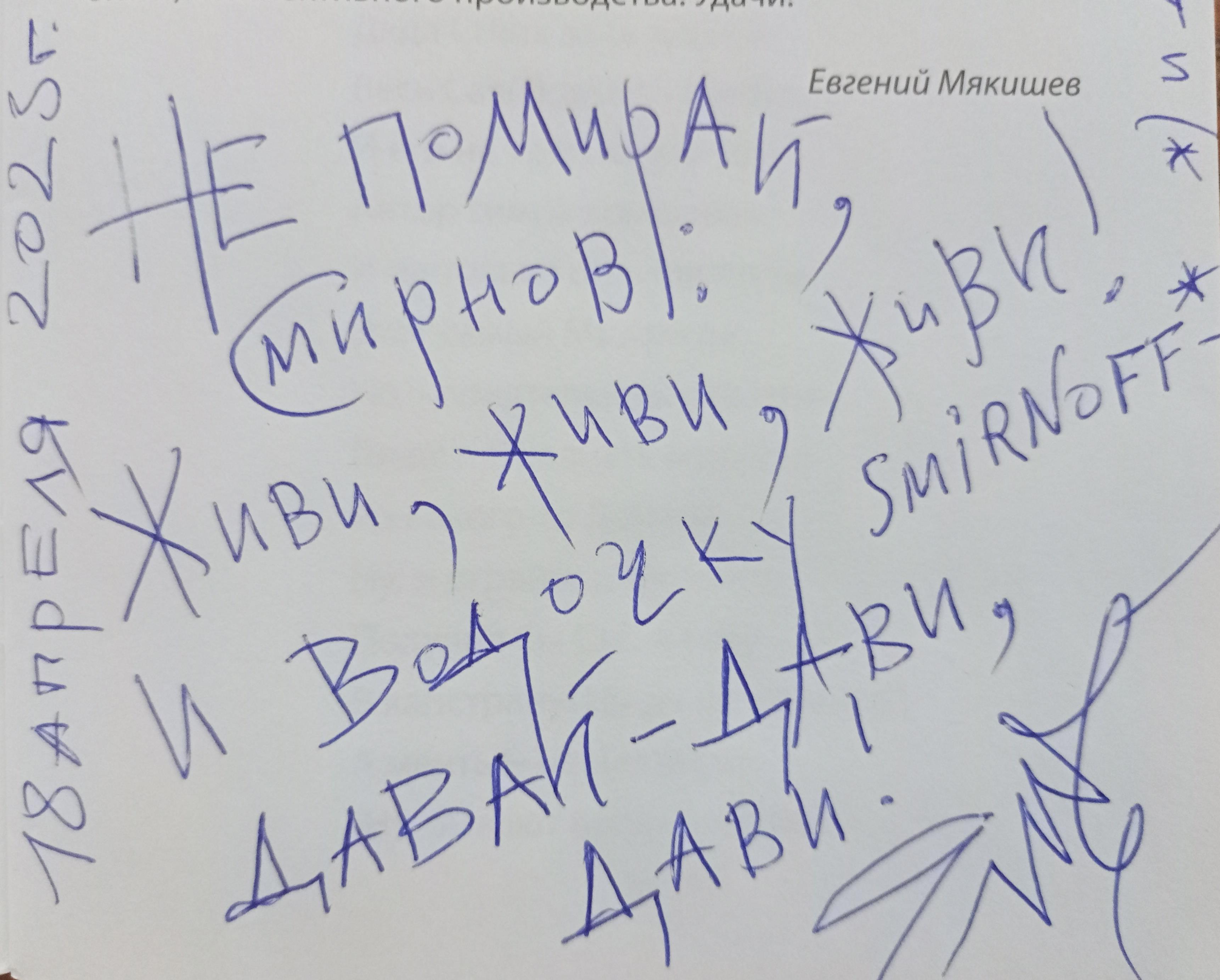 всего полтора месяца назад он подарил мне книжку с пожеланием - не помирай: живи, живи, живи!