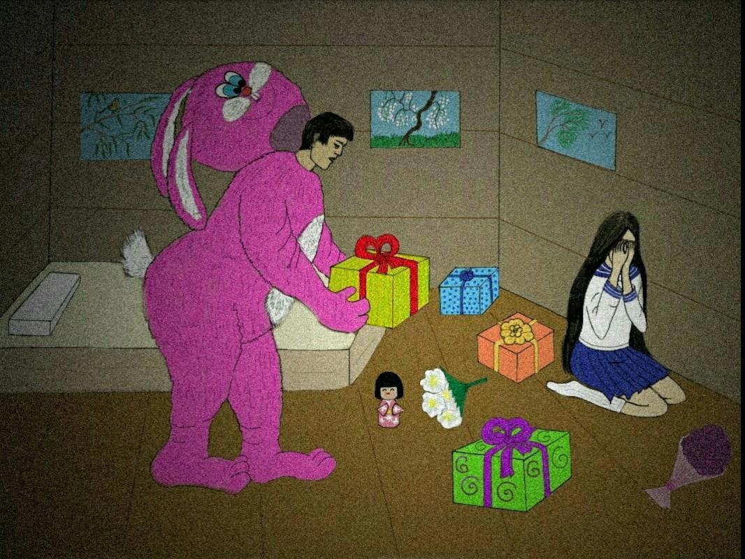 А в старшей школе ему не посчастливилось второй раз: он влюбился без шансов в самую милую, добрую и тихую девочку (нет, не в главную красавицу школы). Он повторил "подвиг" Коллекционера - украл ее в надежде, что она хоть как-то обратит на него внимание и полюбит его. Но, в отличие от Коллекционера, он действительно ее любил, хотел защищать от всего мира , она казалась ему такой хрупкой, и сделать ее счастливой. Он подрабатывал после школы аниматором - развлекал людей в костюме розового зайца и раздавал рекламу, а на все деньги покупал ей цветы и подарки. Но она их даже не распаковывала, а только сидела в углу и тихо плакала.