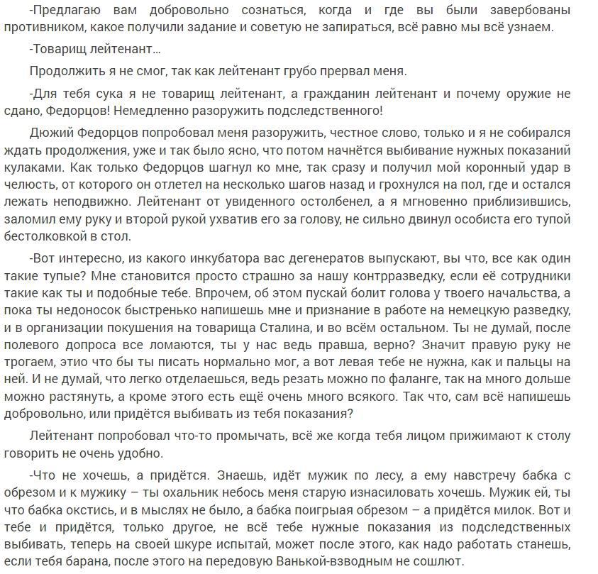 Я то, наивный думал, что времена, когда в книгах отечественных авторов сотрудники контрразведки времён 1941-1945 показаны исключительно как умственно отсталые дуболомы, давно прошли и никто не будет повторять перлы Юрия Корчевского. Но тут... Два дебила подряд в одной книге...