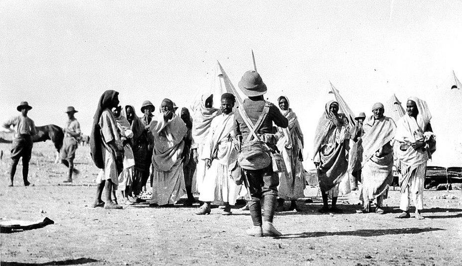 (Британские солдаты конвоируют пленных воинов ордена Санусия)
