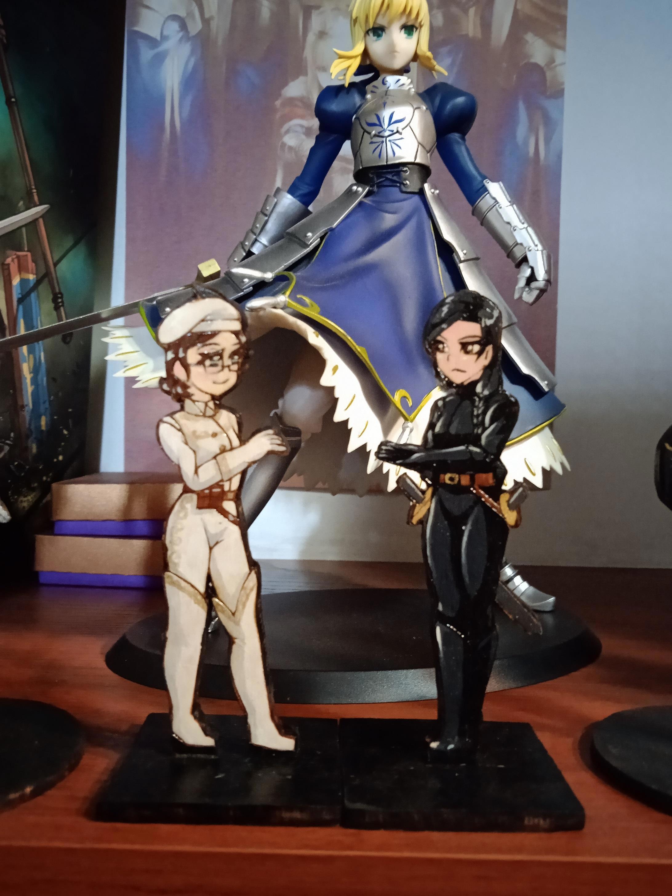 Мэтр Роза Гранчи, она же (с некоторых пор) дама Роза, она же мэтр Белая Сова - и её вернейшая приспе... подруга и соратница, Жанна. Просто Жанна, ей не нужны титулы и прозвища. Фигурки раздельные, но составляют парный комплект, и подставки у них квадратные специально чтобы их удобнее было ставить рядом друг с другом. .