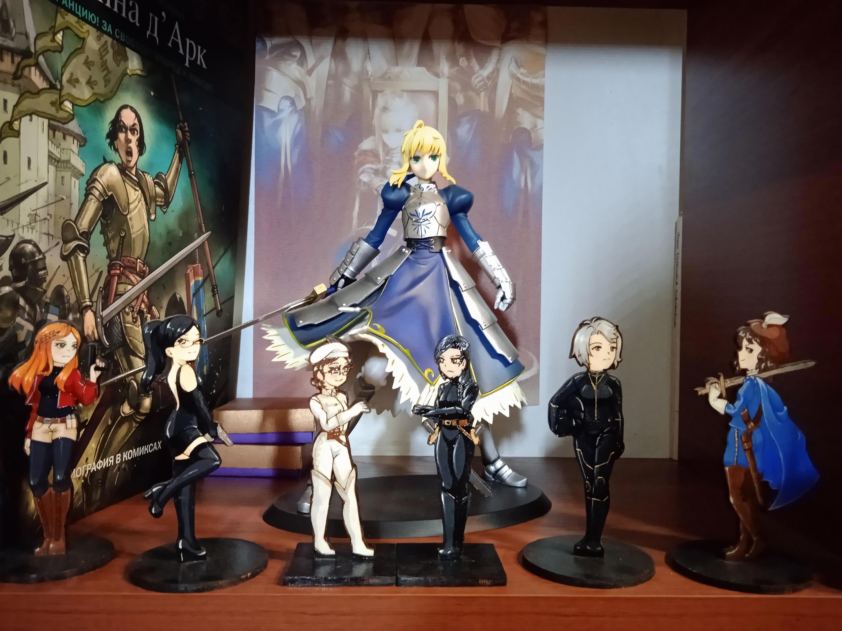 А вот и вся полочка в сборе! Фигурки Розы и Жанны чуть в меньшем масштабе и с другими подставками, но так и должно быть - они должны выделяться.