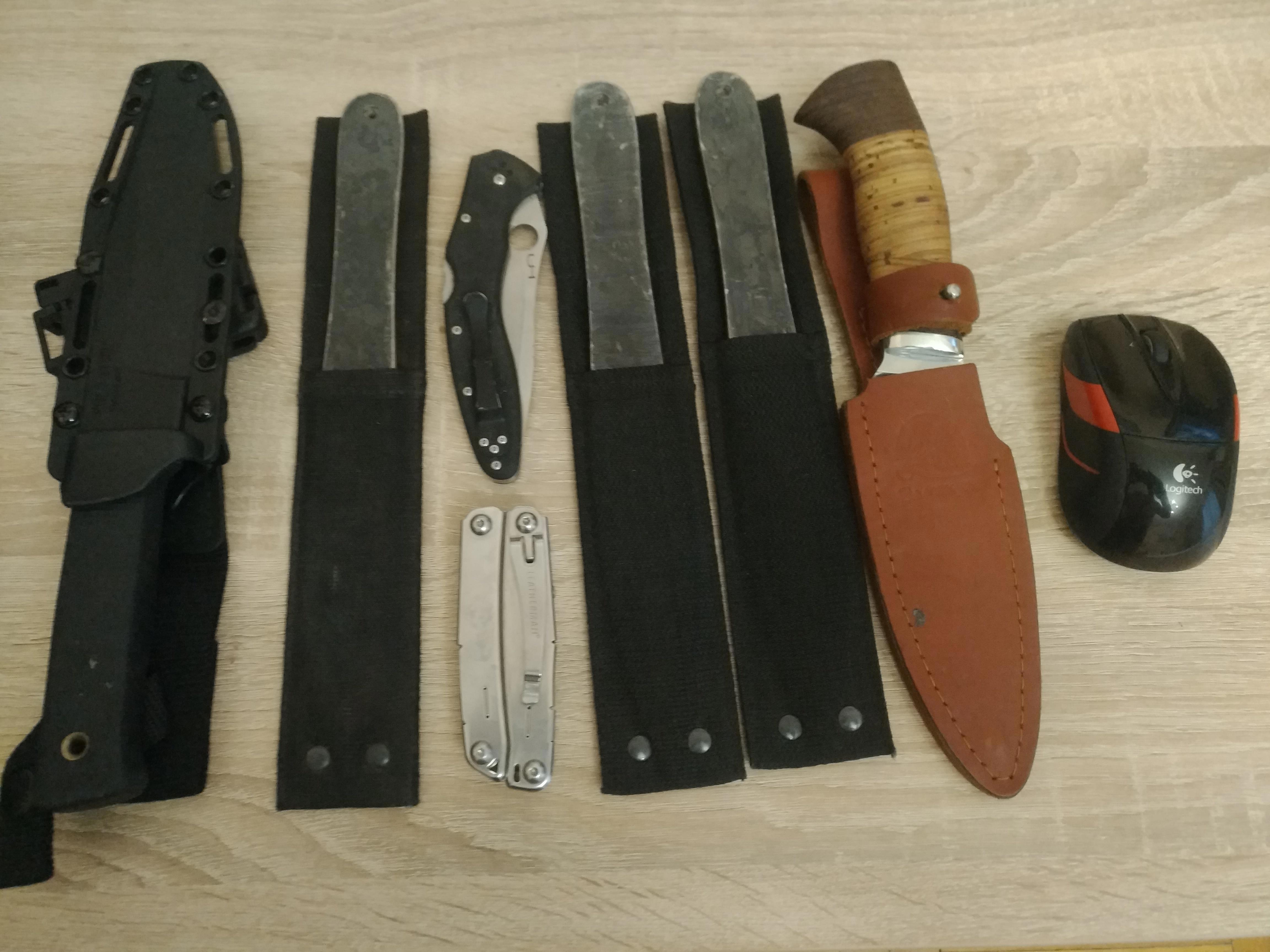 Автор: Алексей МазуровМеня некоторые читатели критиковали за то, что мой ГГ на рыбалку тащит много ножей. Вот один из вариантов моего набора, на майские еду порыбачить. Кабары в этот раз брать не стал, ротация...да, ещё один складничок лежит в машине. Мышка для понимания размеров ))