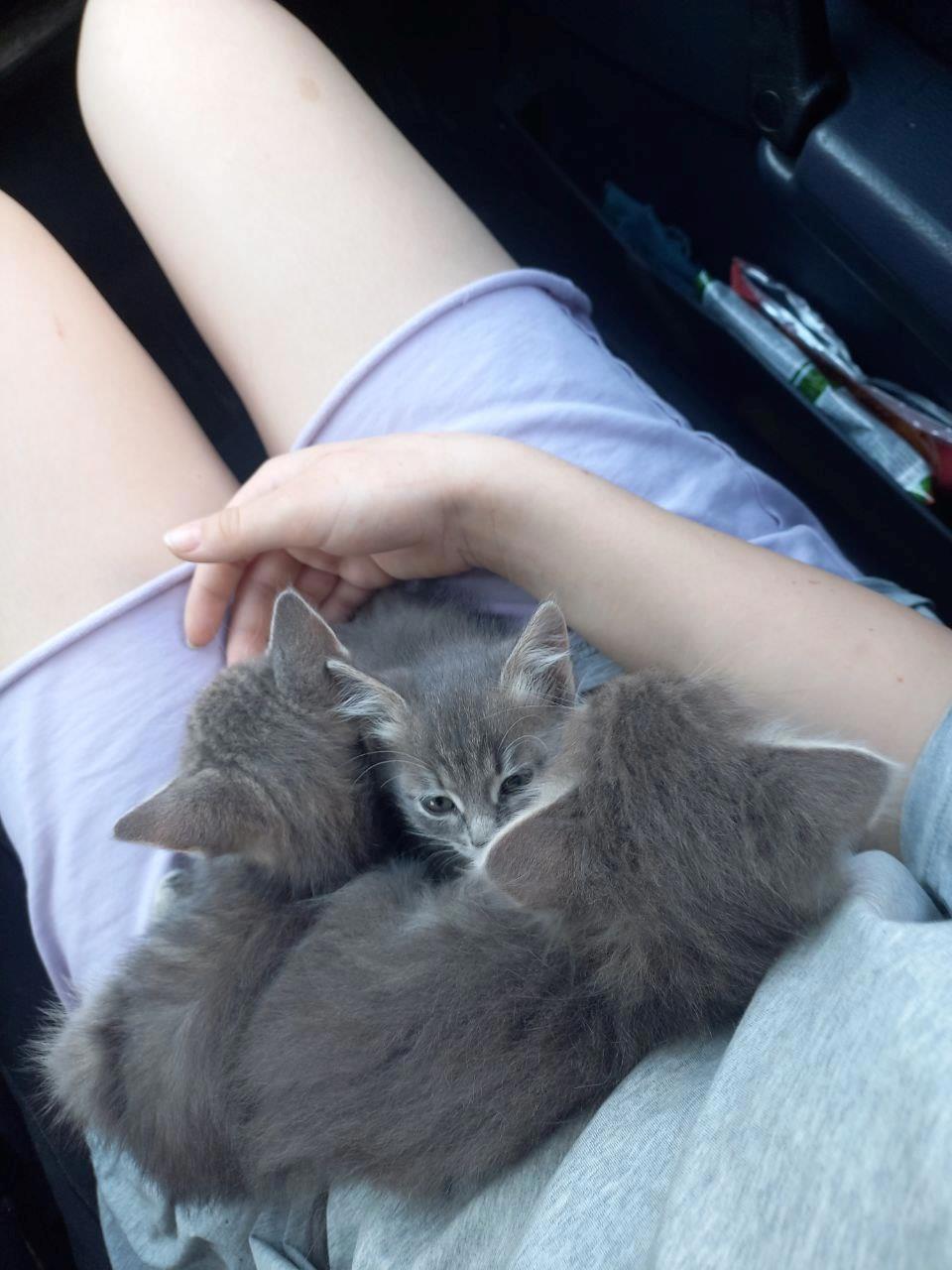 Когда мы ехали по трассе, дочка сидела рядом с водителем, я на заднем сиденье. "Котята!" -- воскликнула вдруг она. Зять подтвердил, что да, мол, котята. Мне, конечно, никаких котят позади видно не было. И вообще, мне было не до котят, потому что я придерживала свои стройматериалы и пакет с кучей пластиковых емкостей из Фикс-прайса и, вместе с этим, зависала в интернете. Потому я лишь подумала: "Ну, котята, и что? Подумаешь, в очередной раз кто-то выкинул! Что теперь?"