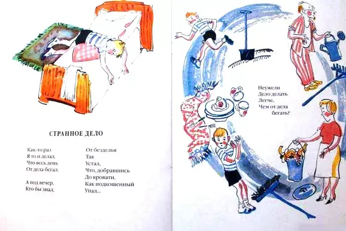 Моя задача — сделать понятным слово из контекста, окружить незнакомое слово такими словами, чтобы к помощи родителей ребёнок не прибегал. Я должен помогать ребёнку испытывать радость открытия. Почему любят загадки? — они уводят в сторону от предмета, но недалеко, затемняют смысл предмета, но не настолько, чтобы ребёнок не разглядел предмет. Поэзия для детей должна содержать элемент игры в прятки».