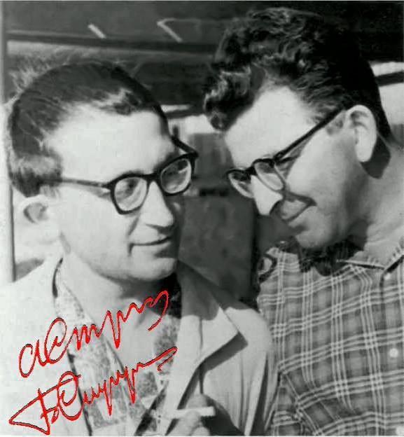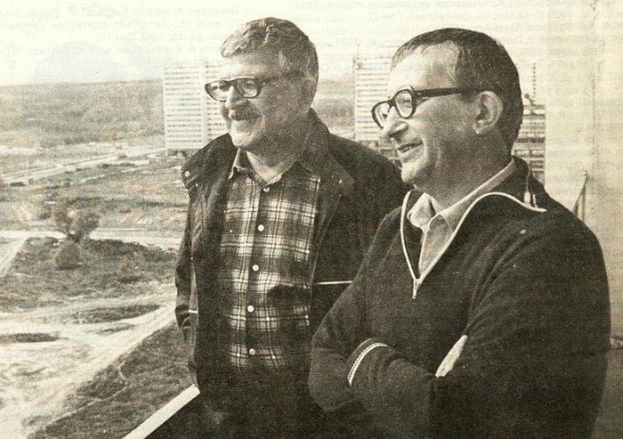 Аркадий и Борис Стругацкие на балконе московской квартиры Аркадия Стругацкого. 1980-е годы