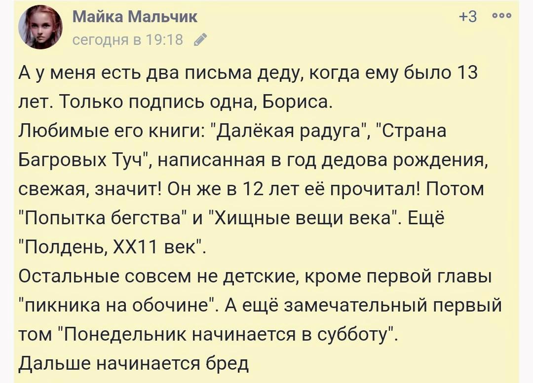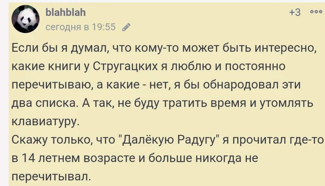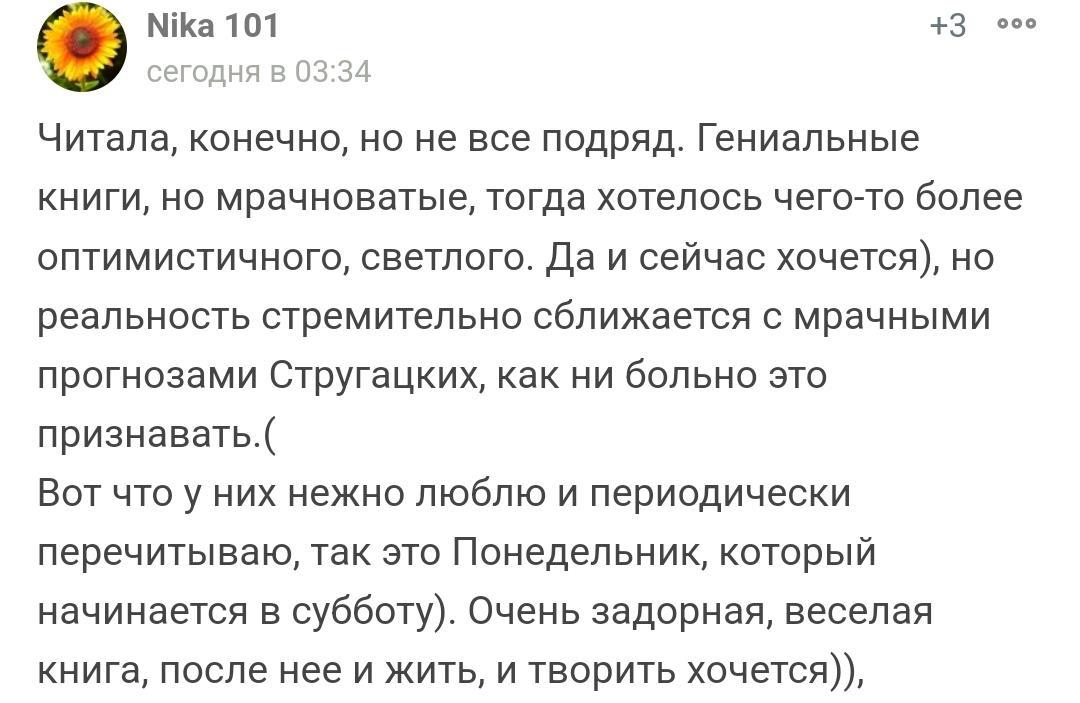 Про творчество братьев можно писать много и долго. Более того ни у кого не совпадут мнения о прочитанном, там столько уровней под текстом, что каждый понимает в меру своей продвинутости....