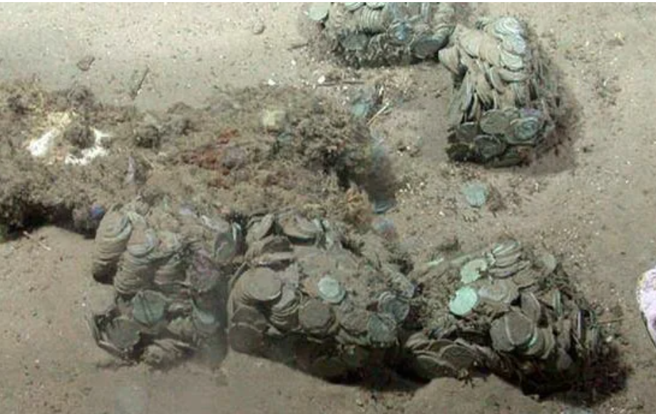 Вот этот корабль ОМЕХ и попыталась выдать за источник поднятых сокровищ - ну а что, ведь там были испанские монеты, кроме английского золота? Вот их-то мы и нашли, вот, видите - на фотографиях сплошь одни пиастры!