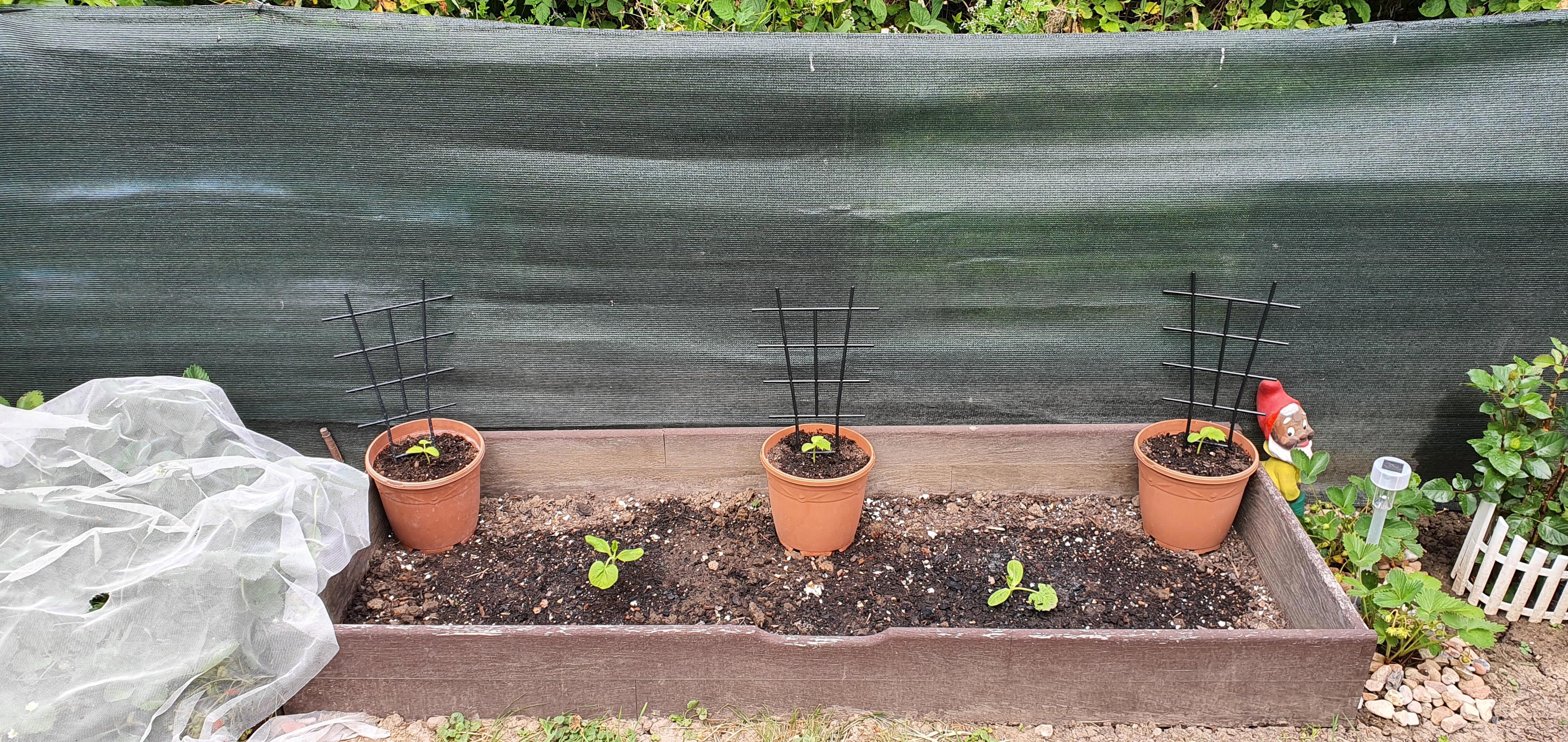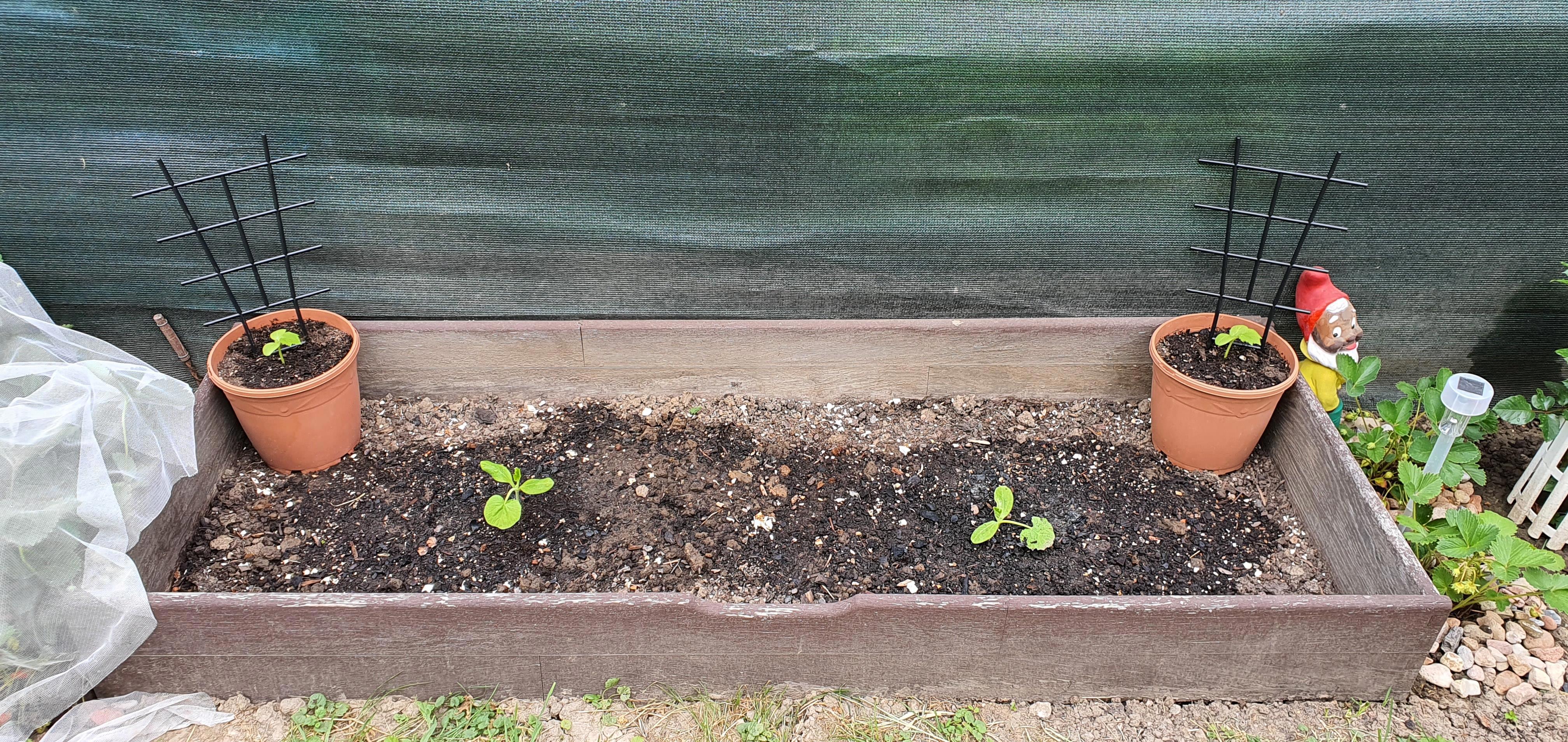 Решила пока так оставить, в надежде, что листья кабачков будут не столь большими.