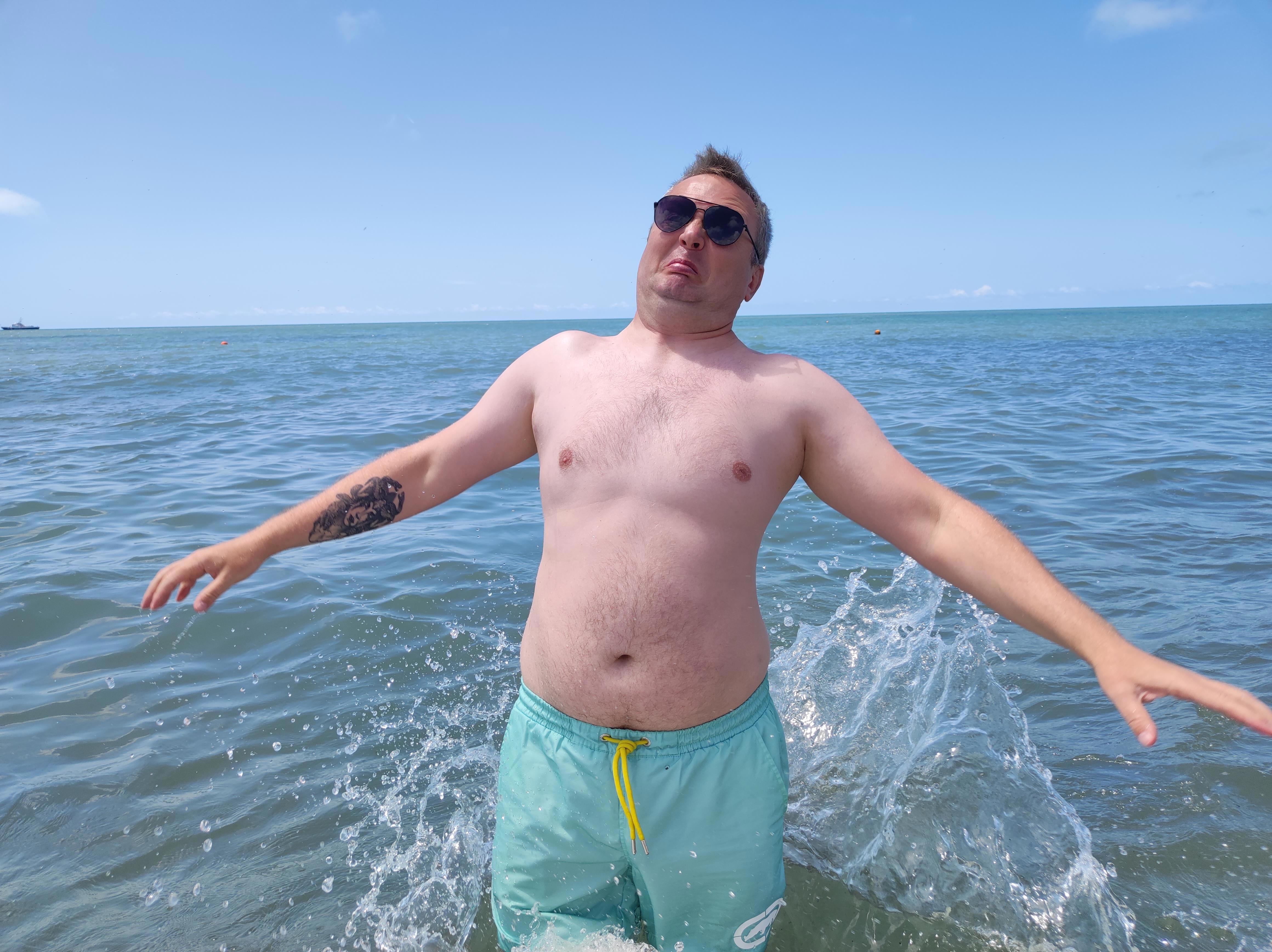 Погода у нас тут шикарная, жары нет +24° сегодня. Вода ещё прохладная, но терпимо. Купаться можно.