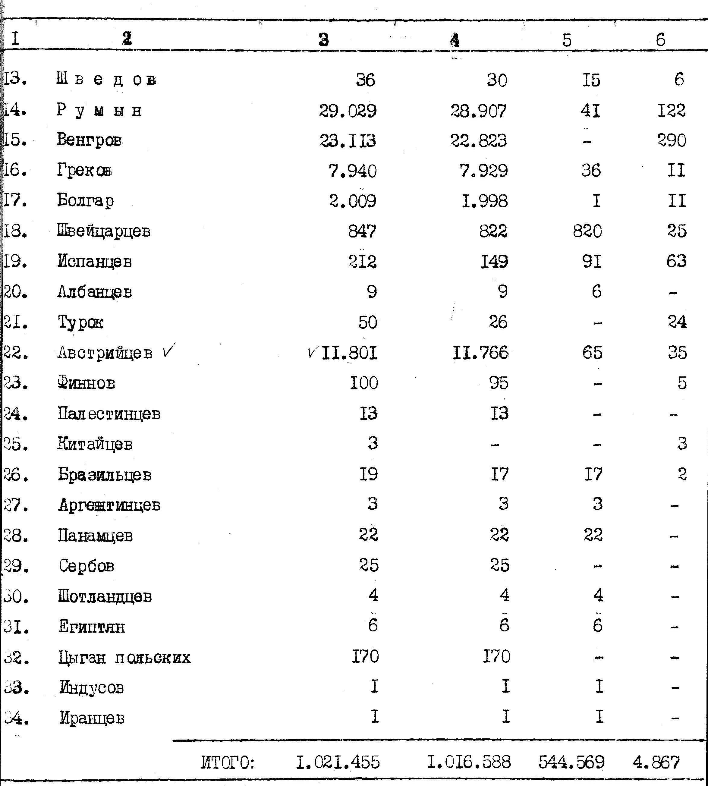 Кроме указанного количества прошли транзитом на родину через приемо-передаточные пункты групп войск поляков - 318.905, венгров - 35.501, австрийцев - 25.884, итого - 380.290 человек.