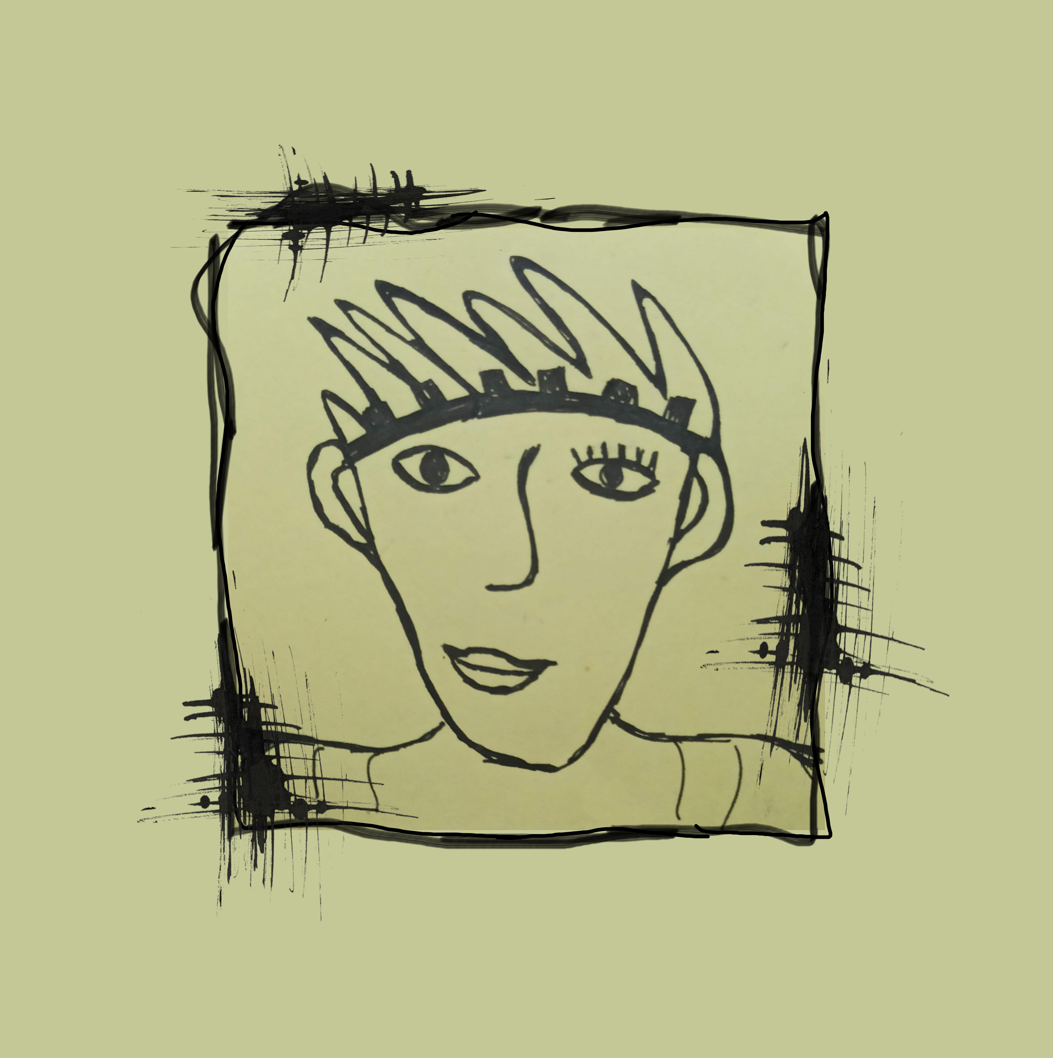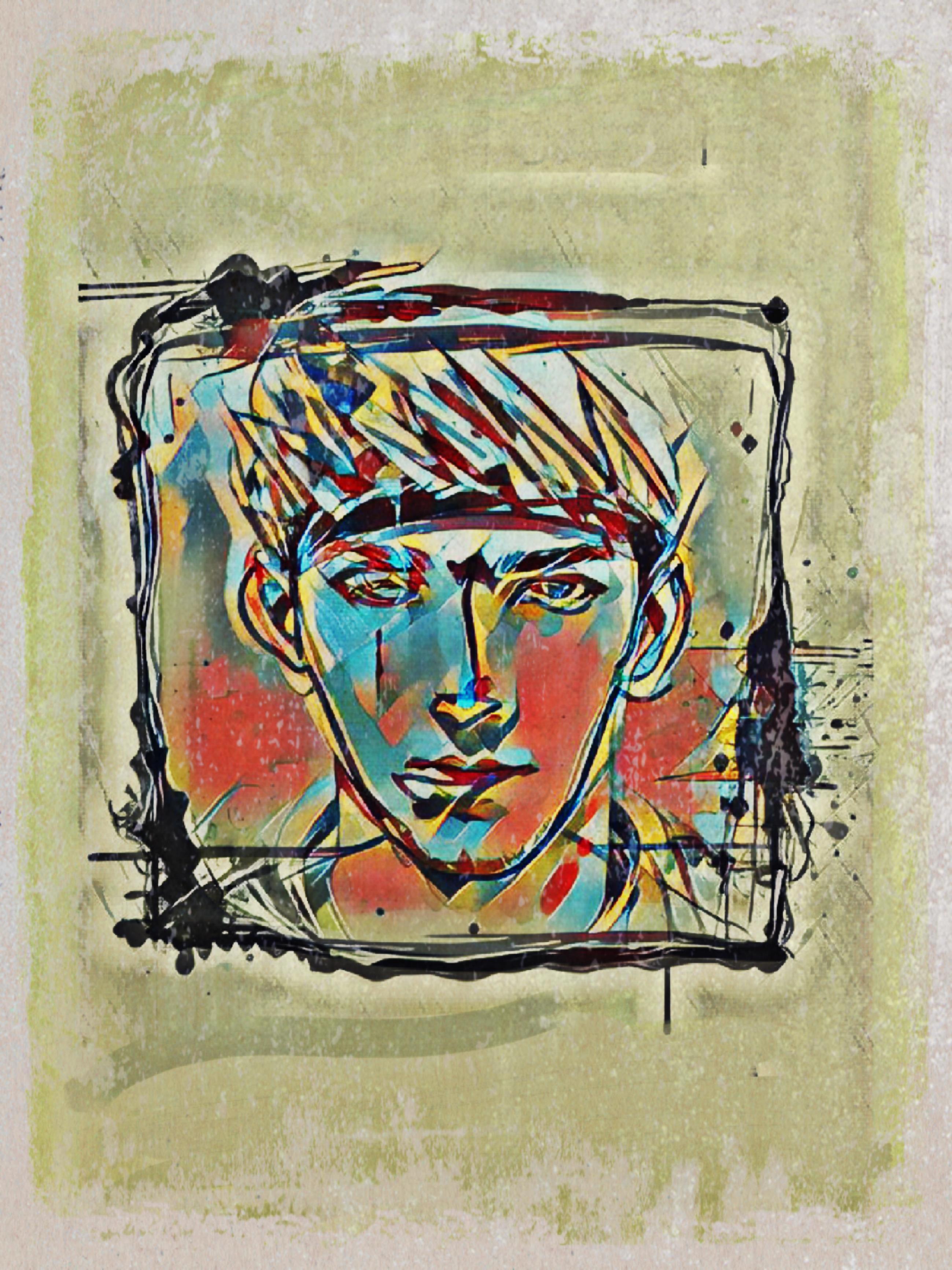 Там я сделал вокруг рисунка с лицом такой контур квадратик креативно. И потом, в результате обработки разными способами получилось хорошо