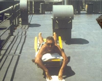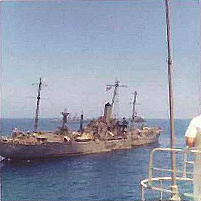 В 8:50 командир передал в штаб 6-го флота, что корабль будет находиться в этот день в пределах 30 морских миль от точки с координатами 31-45N и 33-30E. Было ясно, видимость прекрасная. Флаг площадью 3,5 квадратных метра был поднят в 6:30. Обычно свободные от вахт загорали на палубе, даже командир