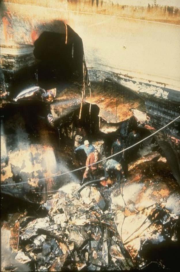 Позже Спектор скажет, что если бы у них были бомбы, то "Liberty" непременно пошёл ко дну. Возле мостика зажглись две бочки с горючим. МакГонагл быстро отдал приказ своему старшему офицеру, лейтенант-коммандеру Филипу Армстронгу, спуститься вниз и освободить бочкис бензином . Лейтенант О'Коннор присоединился к старпому. Следующая за "Миражами" пара "Dassault Super Mysteres" решила, что корабль ставит дымовую завесу, сбросила на него бомбы с напалмом и на развороте обстреляла.