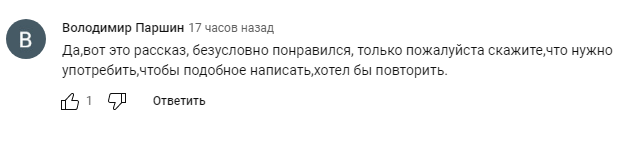Так вот самый зачётный коммент, наверное, вот этот, вне зависимости от того троллит меня чел или реально понравилось)))