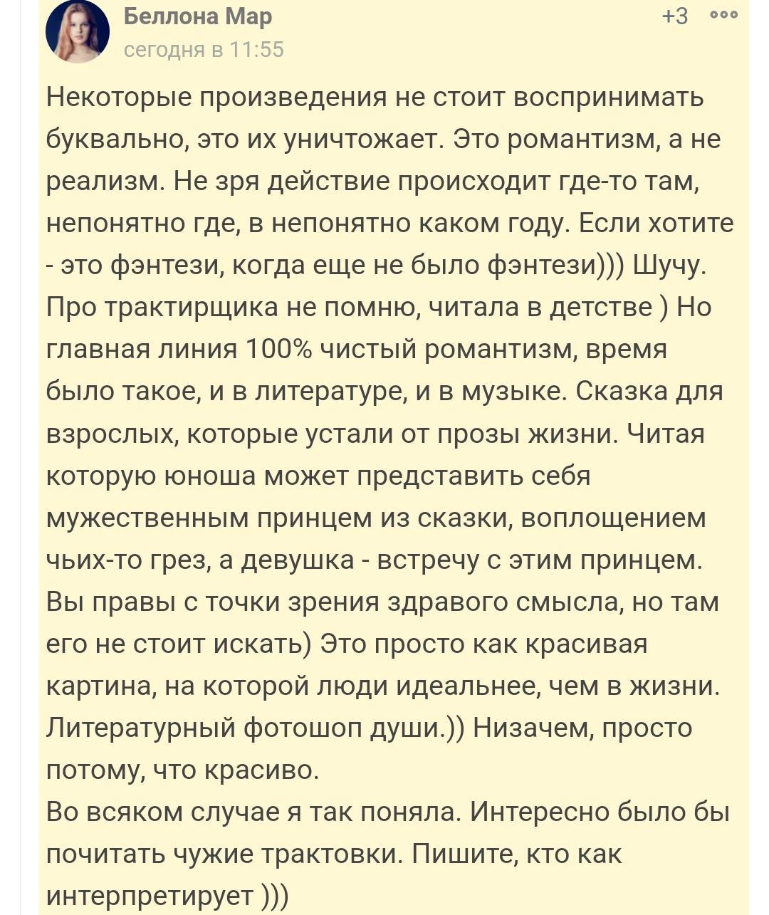 В числе первых этот шедевр оценил Максим Горький, часто читавший гостям эпизод появления перед Ассоль — главной героиней феерии — сказочного корабля