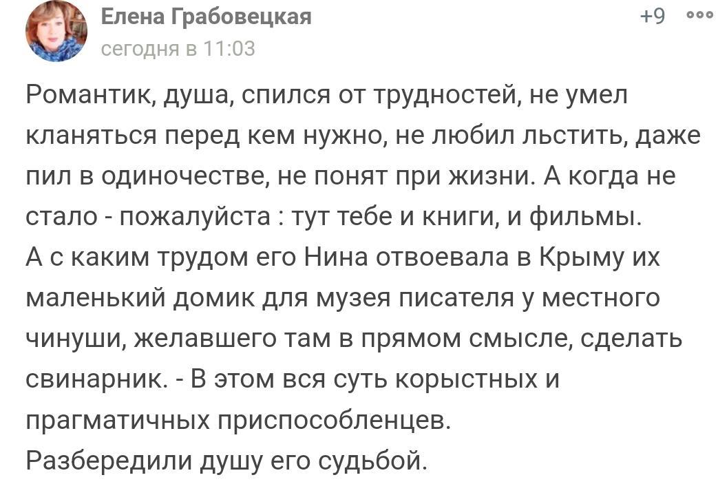 На заседании правления Всероссийского союза писателей член правления Лидия Сейфуллина заявила: «Грин — наш идеологический враг. Союз не должен помогать таким писателям! Ни одной копейки принципиально!»